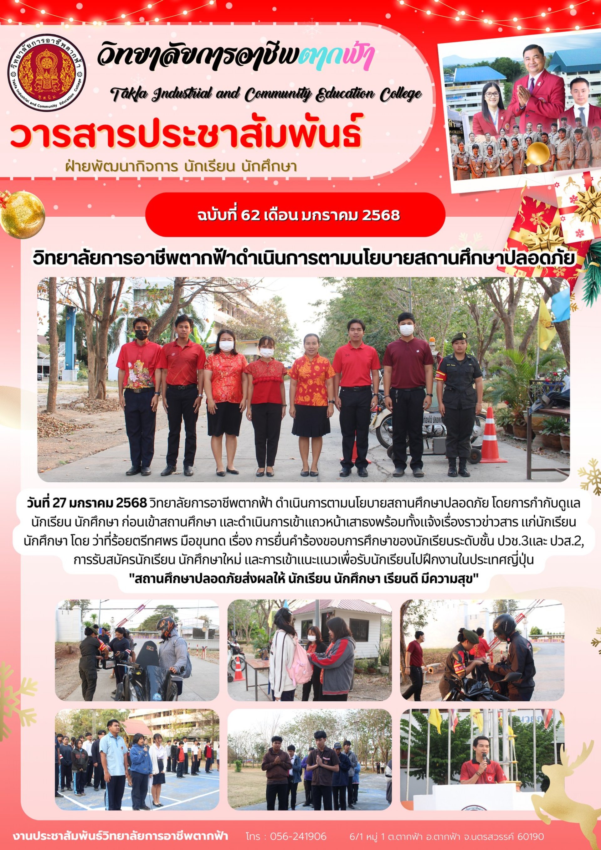 วารสารตากฟ้า ประจำเดือน มกราคม 2568 ฉบับที่ 62 วิทยาลัยการอาชีพตากฟ้าดำเนินการตามนโยบายสถานศึกษาปลอดภัย