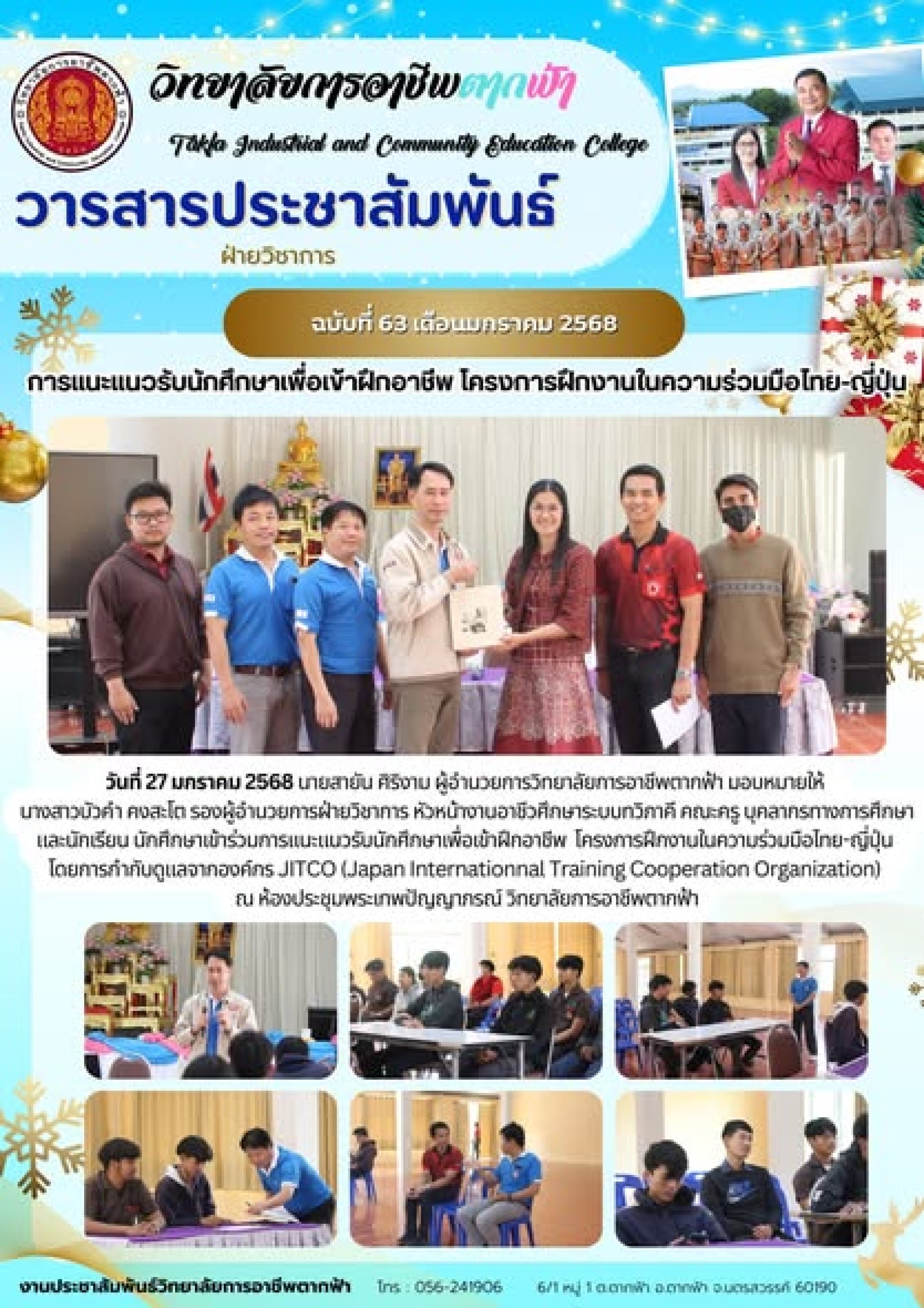 วารสารตากฟ้า ประจำเดือน มกราคม 2568 ฉบับที่ 63 การแนะแนวรับนักศึกษาเพื่อเข้าฝึกอาชีพ โครงการฝึกงานในความร่วมมือไทย-ญี่ปุ่น