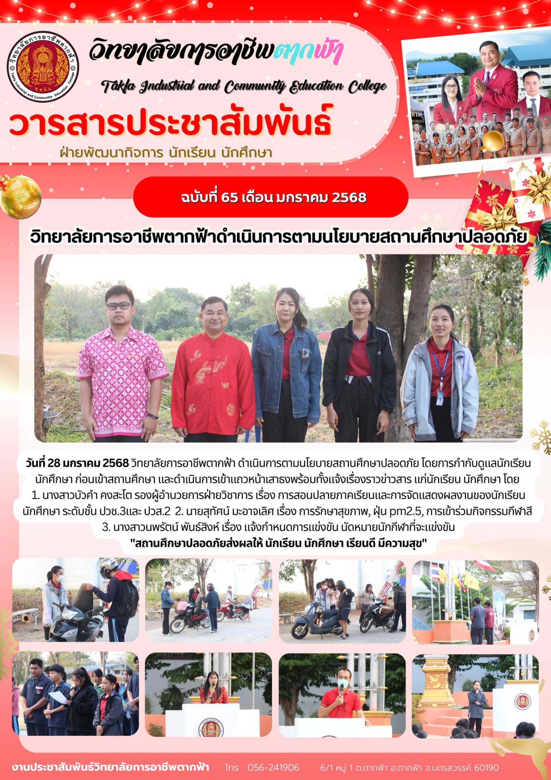 วารสารตากฟ้า ประจำเดือน มกราคม 2568 ฉบับที่ 65 วิทยาลัยการอาชีพตากฟ้าดำเนินการตามนโยบายสถานศึกษาปลอดภัย