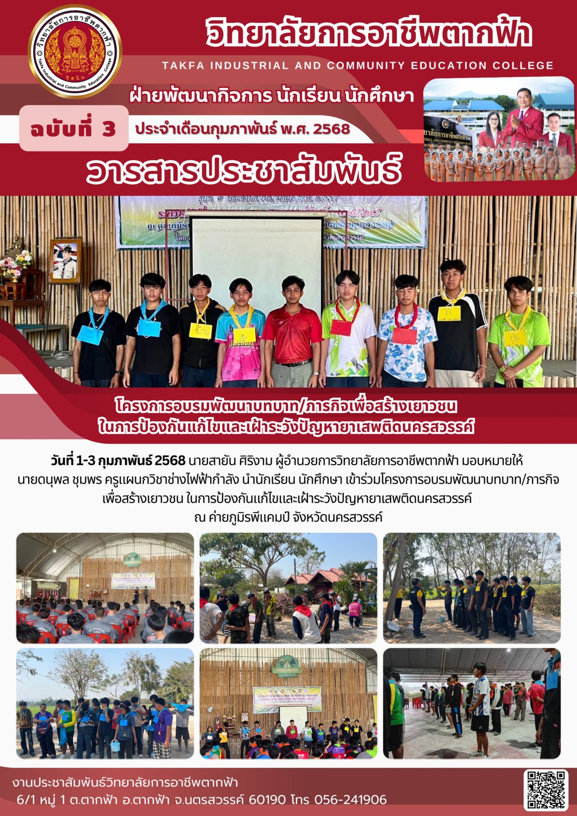 วารสารตากฟ้า ประจำเดือน กุมภาพันธ์ 2568 ฉบับที่ 3 โครงการอบรมพัฒนาบทบาท/ภารกิจเพื่อสร้างเยาวชนในการป้องกันแก้ไขและเฝ้าระวังปัญหายาเสพติดนครสวรรค์