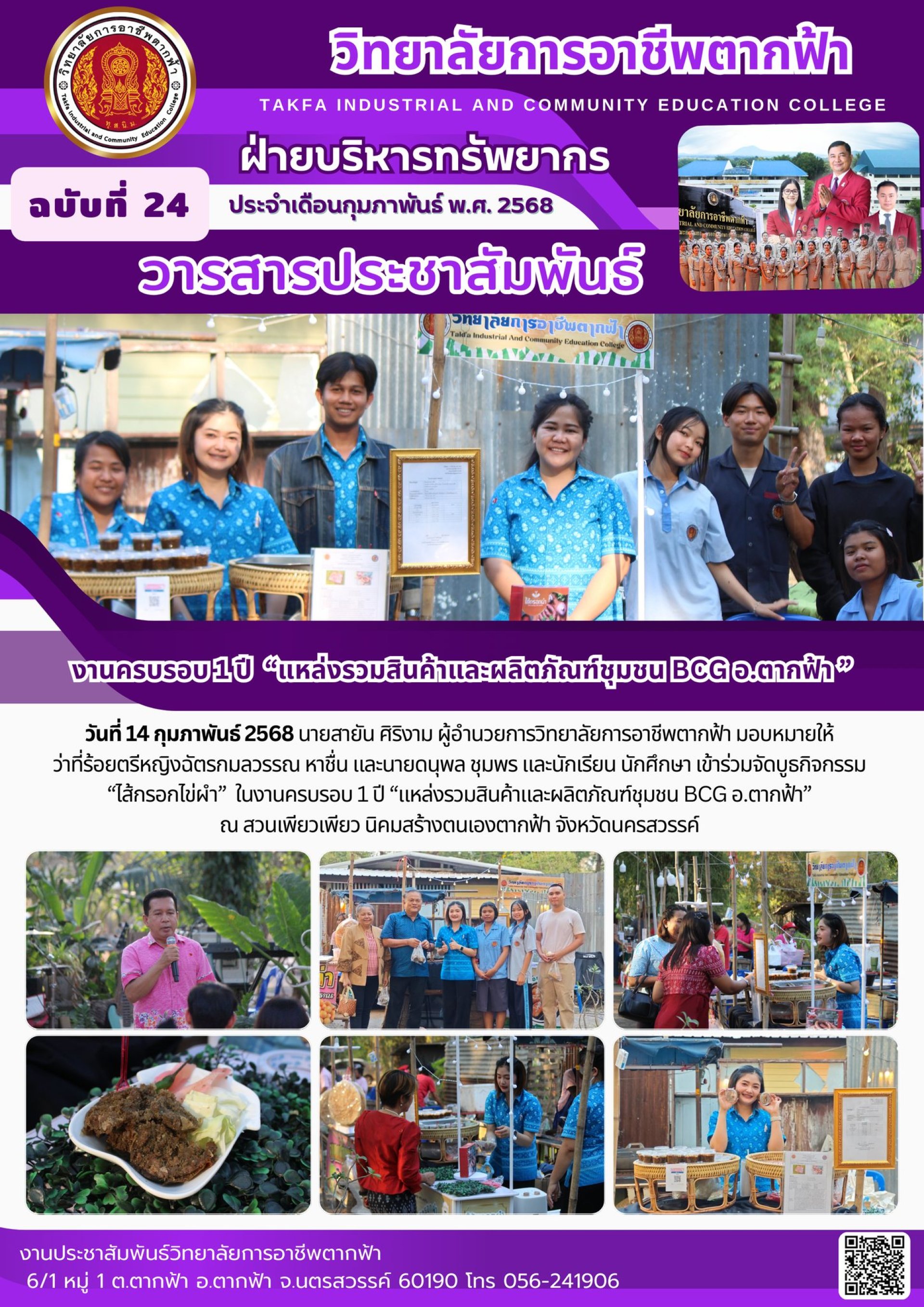 วารสารตากฟ้า ประจำเดือน กุมภาพันธ์ 2568 ฉบับที่ 24 งานครบรอบ 1 ปี แหล่งรวมสินค้าและผลิตภัณฑ์ชุมชน BCG อ.ตากฟ้า
