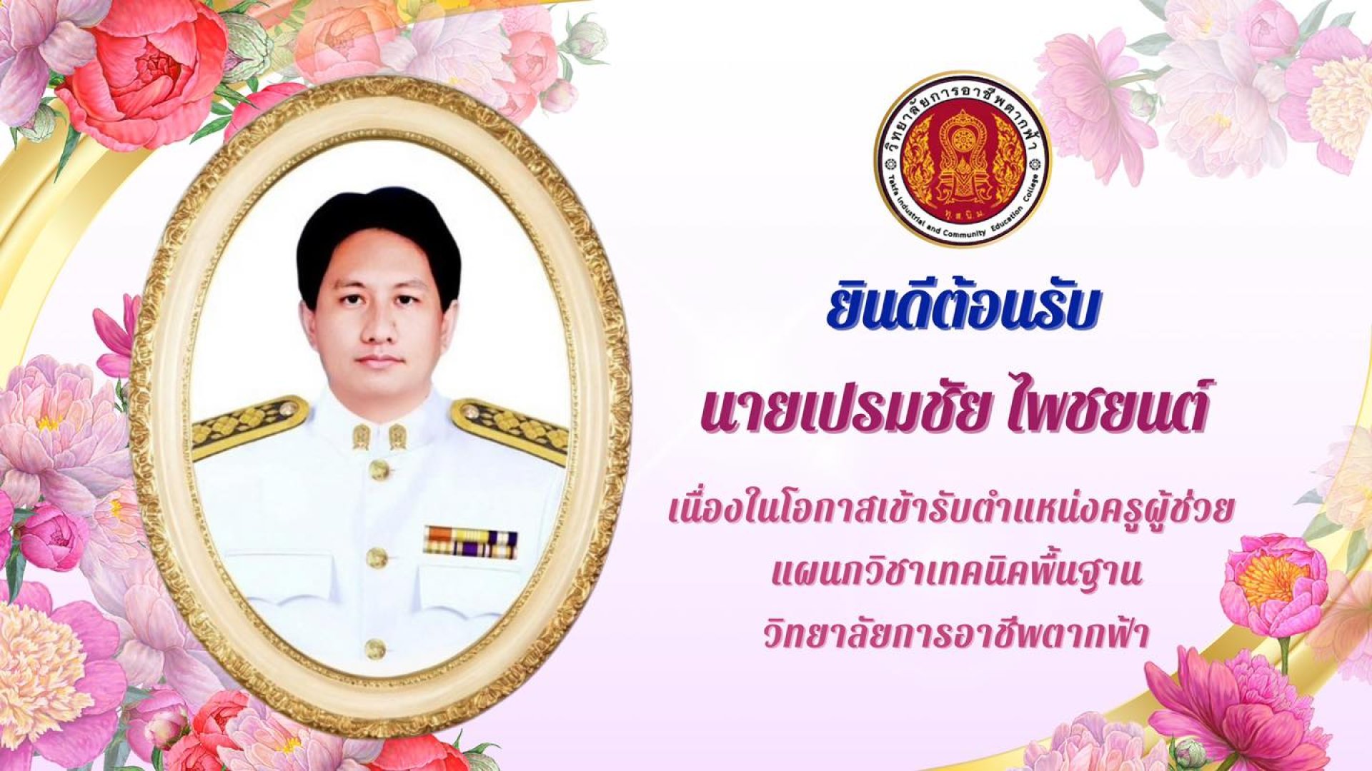 วิทยาลัยการอาชีพตากฟ้า ยินดีต้อนรับ นายเปรมชัย ไพชยนต์