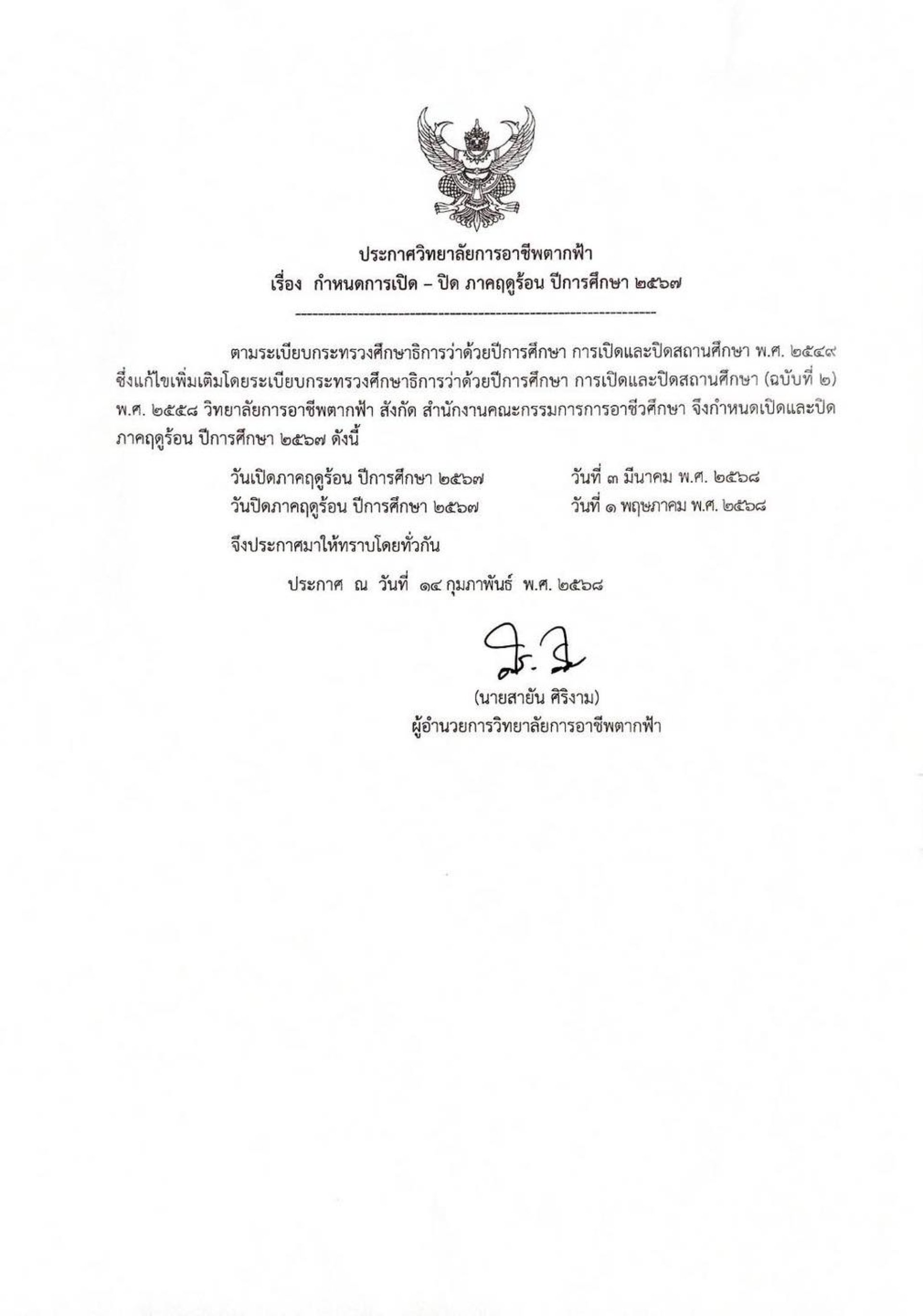 กำหนดการเปิด-ปิด ภาคฤดูร้อน ปีการศึกษา 2567