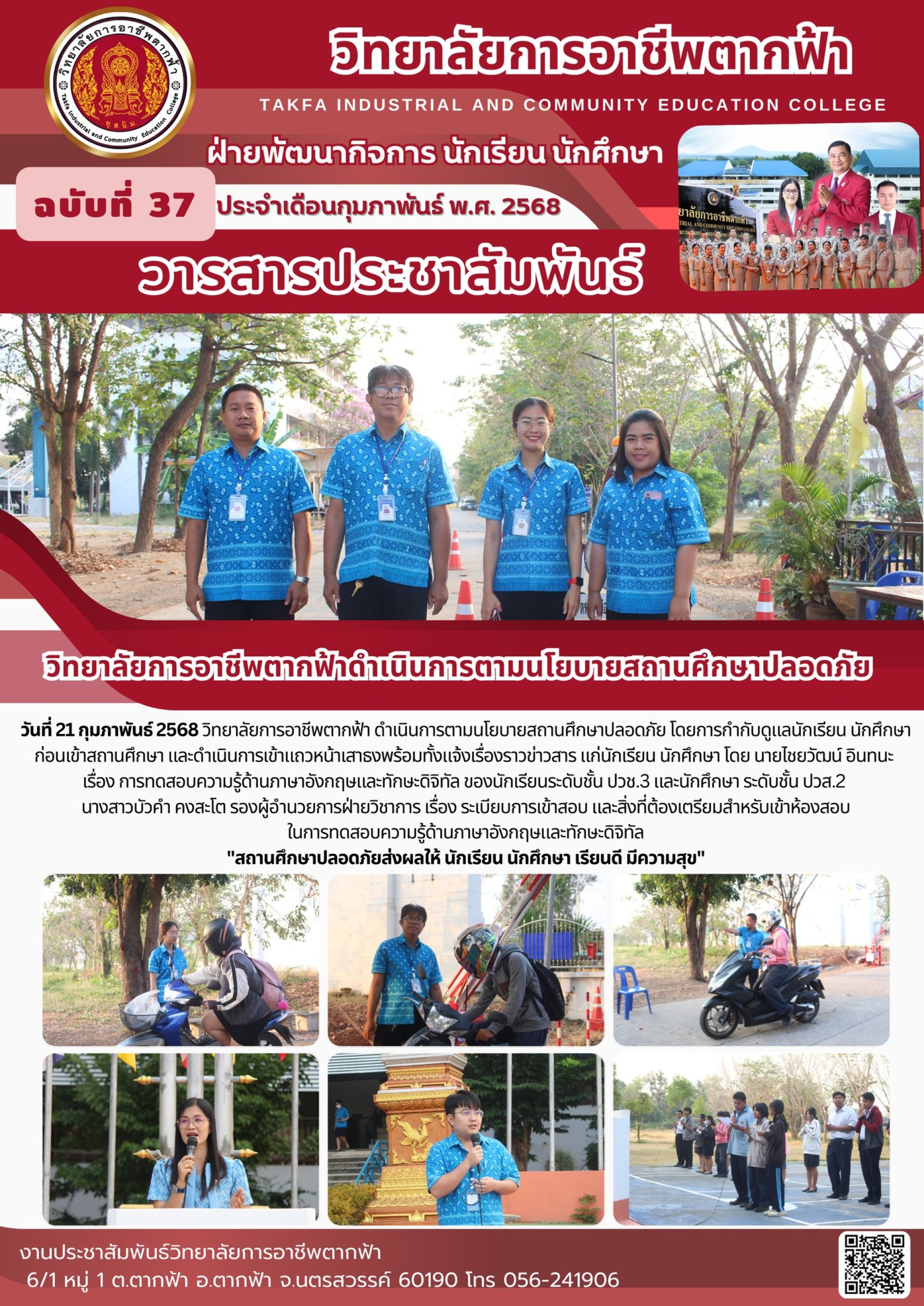 วารสารตากฟ้า ประจำเดือน กุมภาพันธ์ 2568 ฉบับที่ 37 วิทยาลัยการอาชีพตากฟ้าดำเนินการตามนโยบายสถานศึกษาปลอดภัย