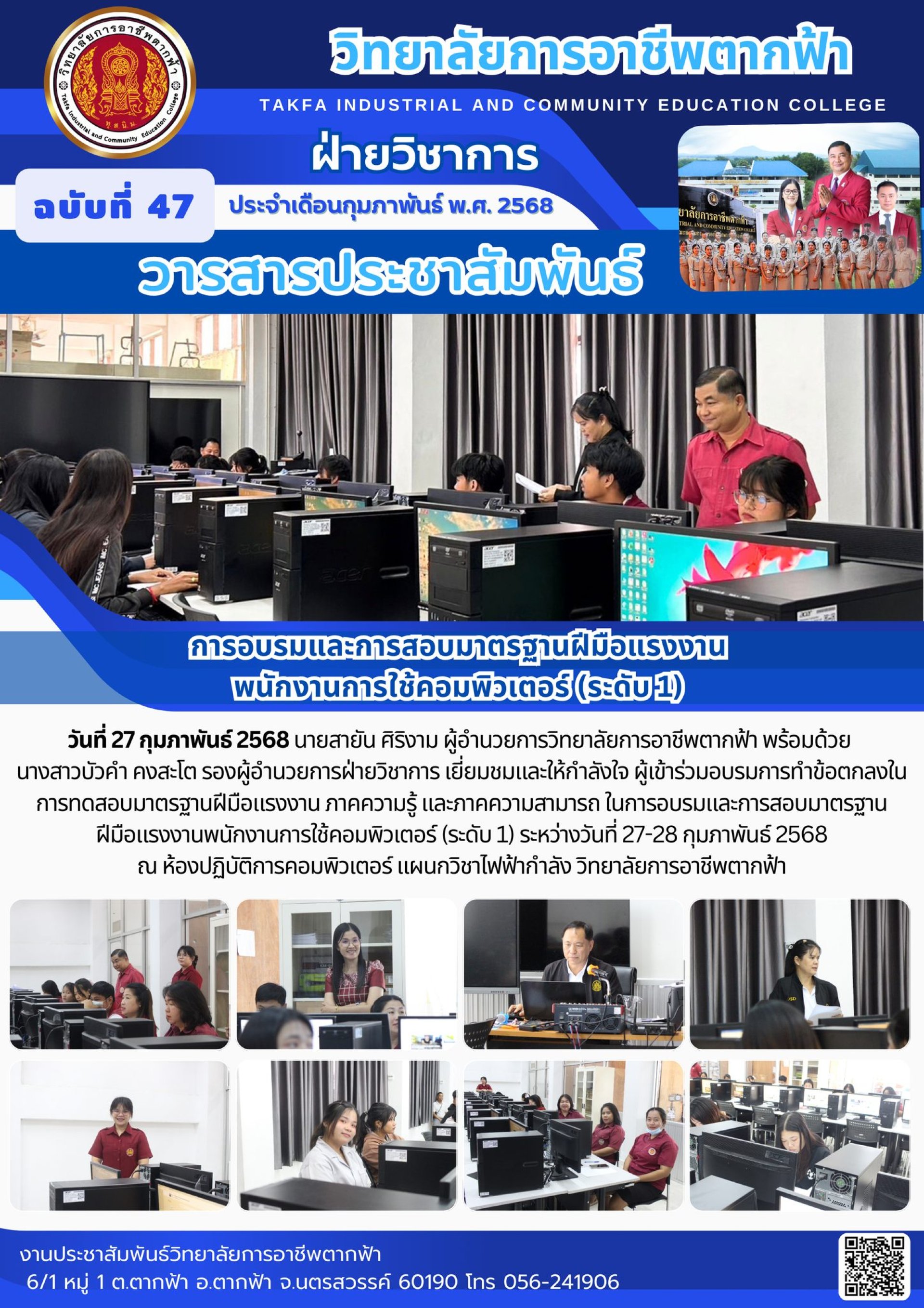 วารสารตากฟ้า ประจำเดือน กุมภาพันธ์ 2568 ฉบับที่ 47 การอบรมและการสอบมาตรฐานฝีมือแรงงาน พนักงานการใช้คอมพิวเตอร์ (ระดับ 1)