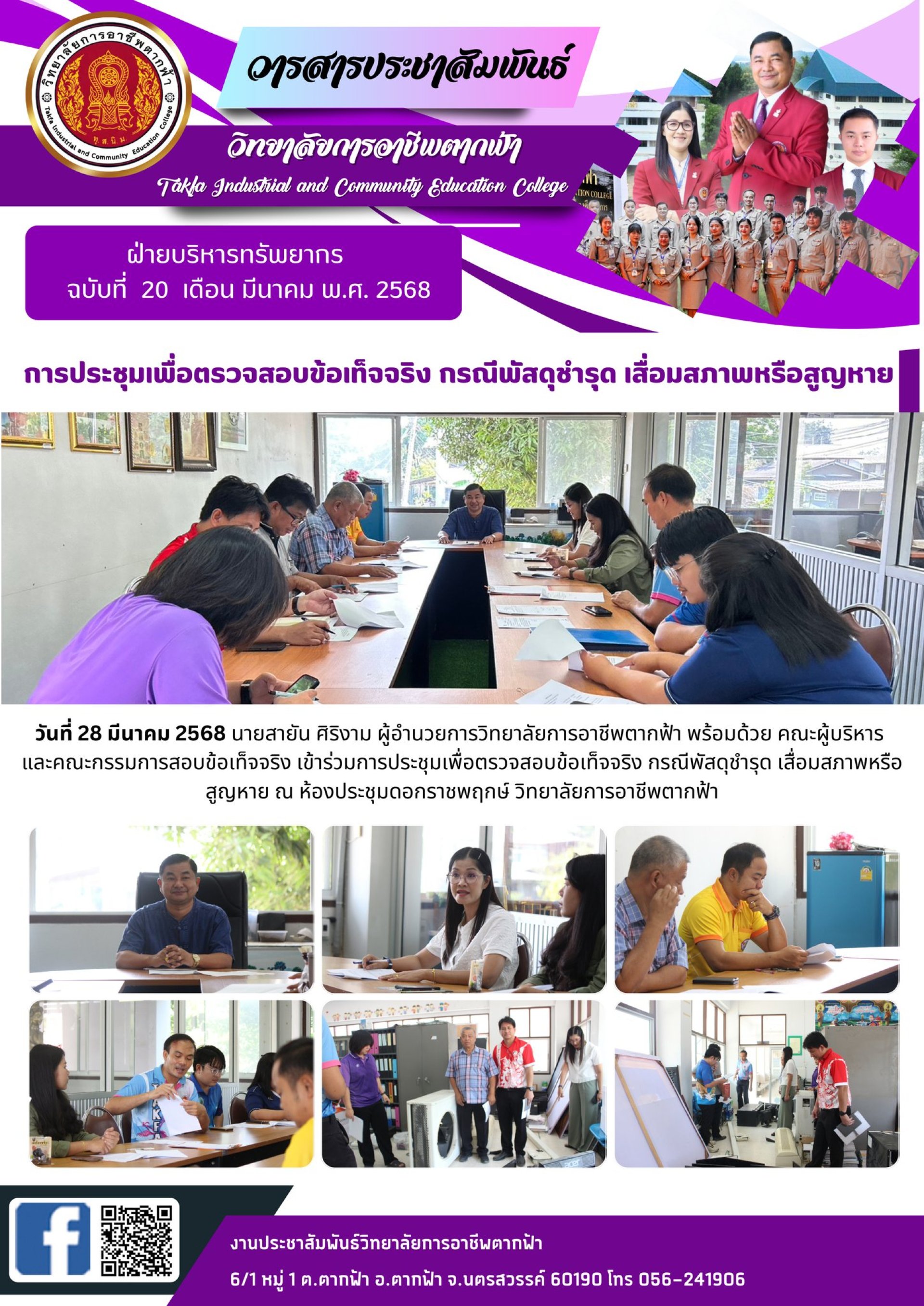 วารสารตากฟ้า ประจำเดือน มีนาคม 2568 ฉบับที่ 20 การประชุมเพื่อตรวจสอบข้อเท็จจริง กรณีพัสดุชำรุด เสื่อมสภาพหรือสูญหาย
