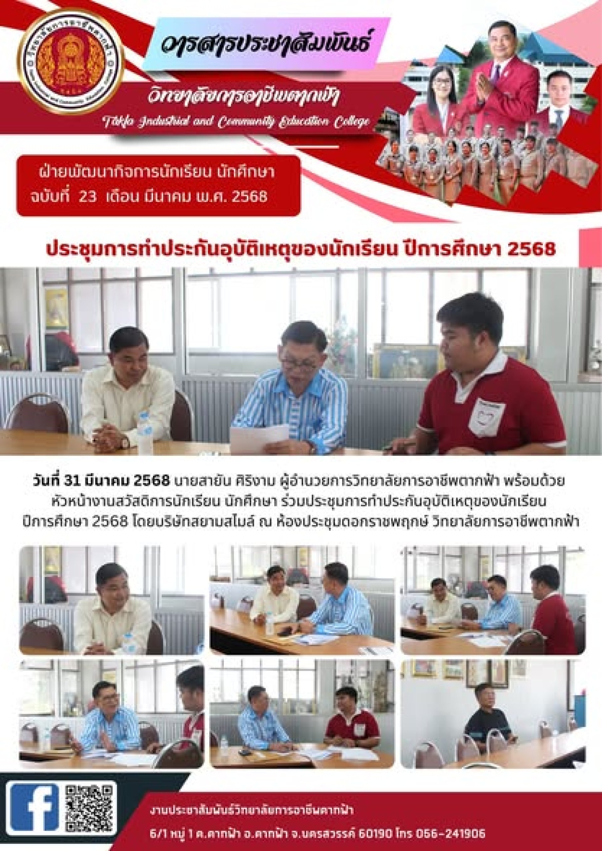 วารสารตากฟ้า ประจำเดือน มีนาคม 2568 ฉบับที่ 23 ประชุมการทำประกันอุบัติเหตุของนักเรียน ปีการศึกษา 2568