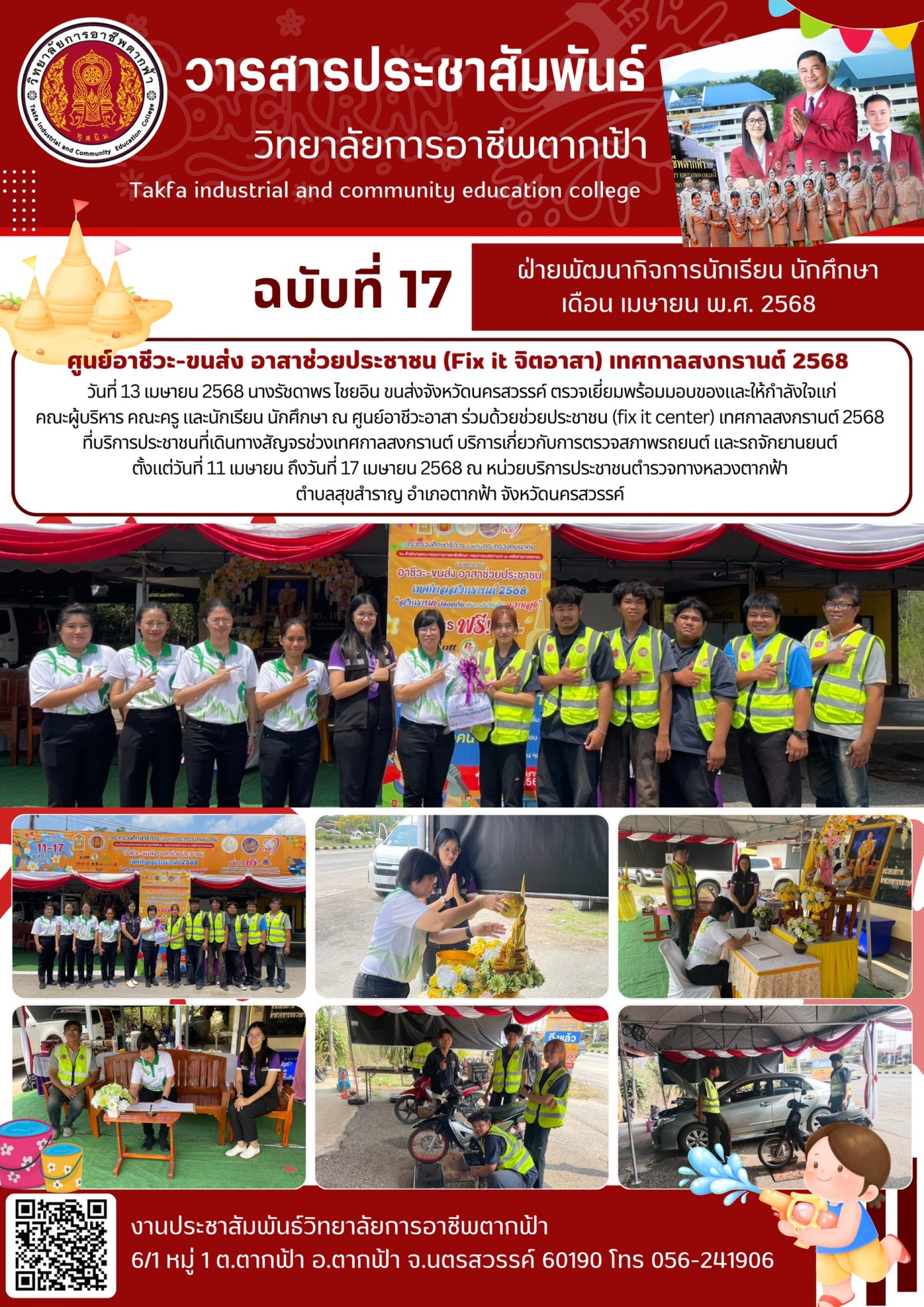 วารสารตากฟ้า ประจำเดือน เมษายน 2568 ฉบับที่ 17 ศูนย์อาชีวะ-ขนส่ง อาสาช่วยประชาชน (Fix it จิตอาสา) เทศกาลสงกรานต์ 2568