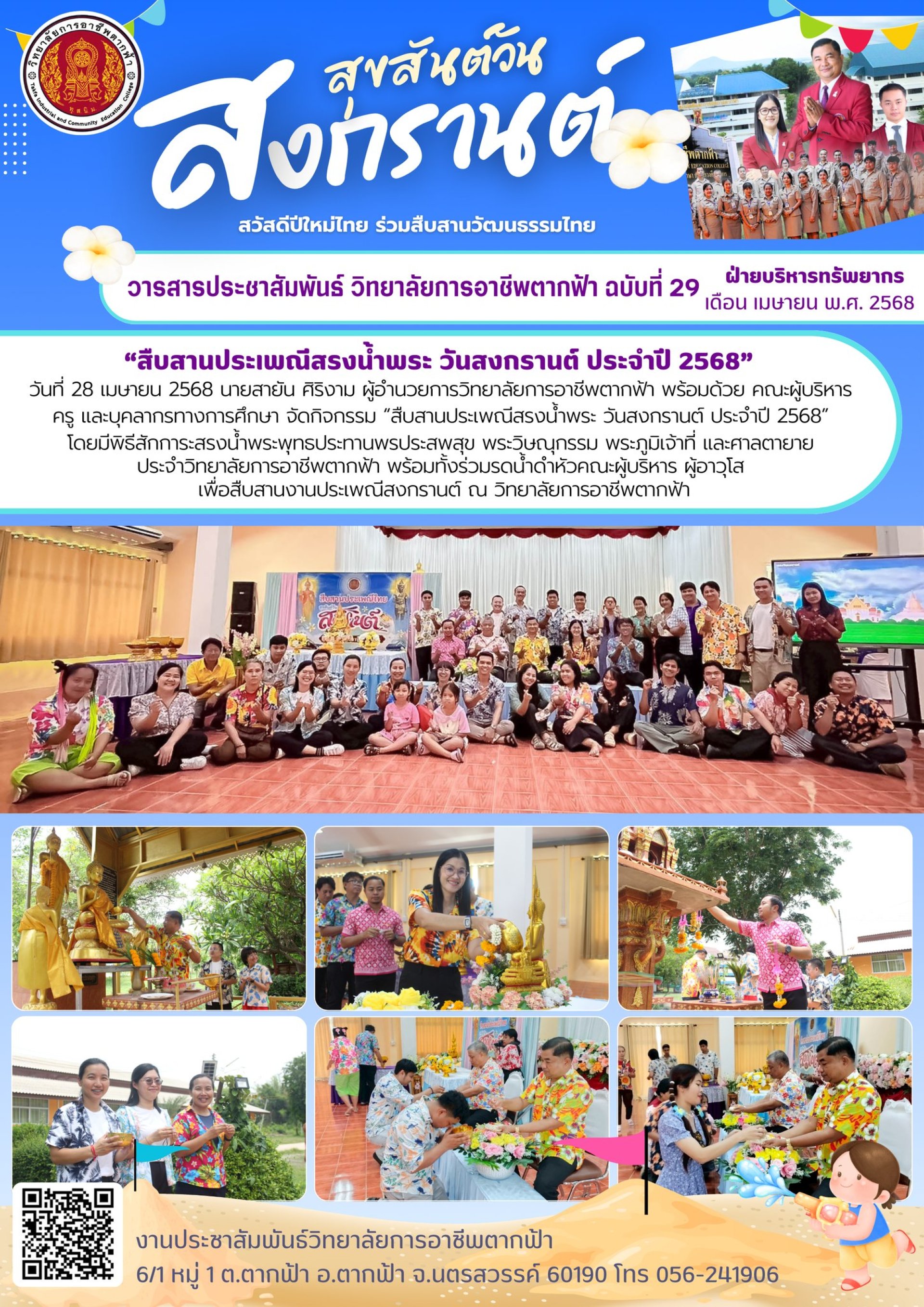 วารสารตากฟ้า ประจำเดือน เมษายน 2568 ฉบับที่ 29 สืบสานประเพณีสรงน้ำพระ วันสงกรานต์ ประจำปี 2568