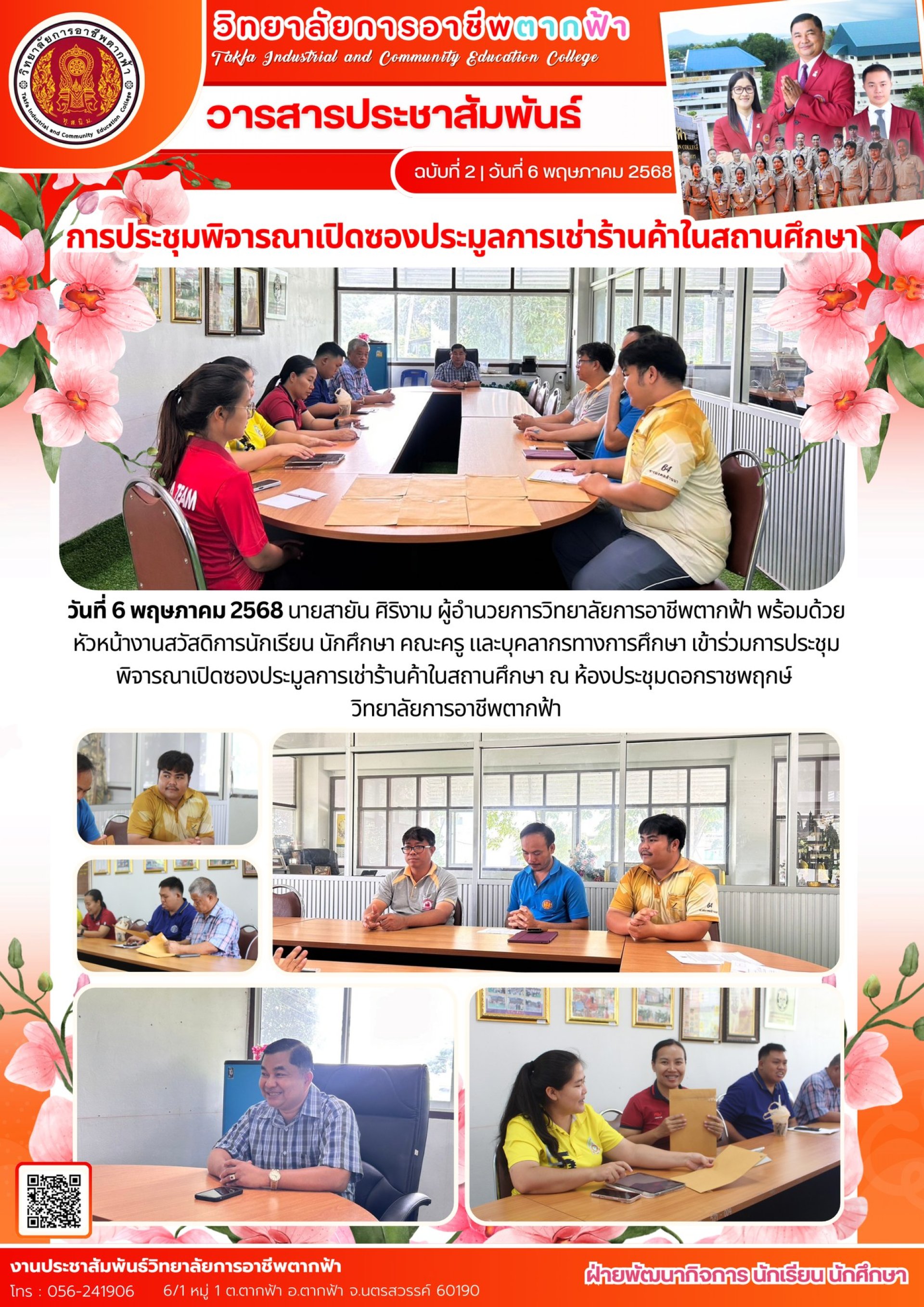วารสารตากฟ้า ประจำเดือน พฤษภาคม 2568 ฉบับที่ 2 การประชุมพิจารณาเปิดซองประมูลการเช่าร้านค้าในสถานศึกษา
