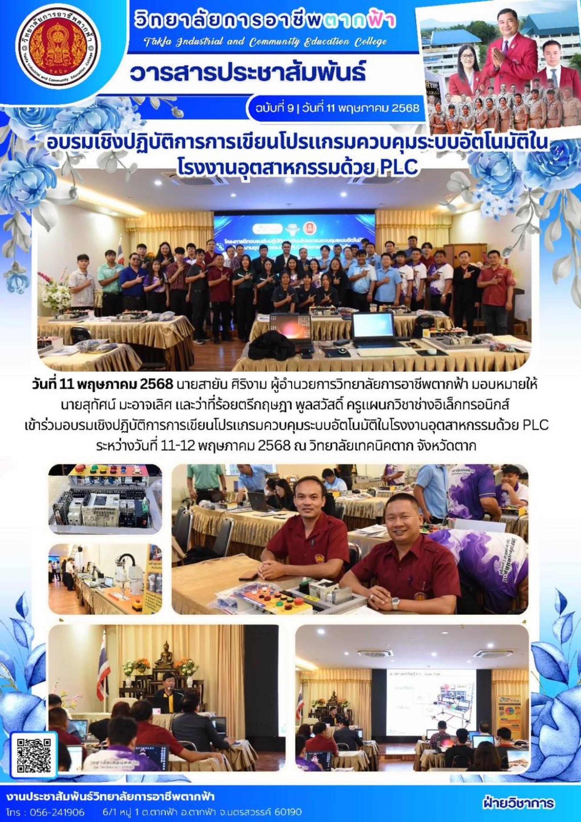 วารสารตากฟ้า ประจำเดือน พฤษภาคม 2568 ฉบับที่ 9 อบรมเชิงปฏิบัติการการเขียนโปรแกรมควบคุมระบบอัตโนมัติในโรงงานอุตสาหกรรมด้วย PLC