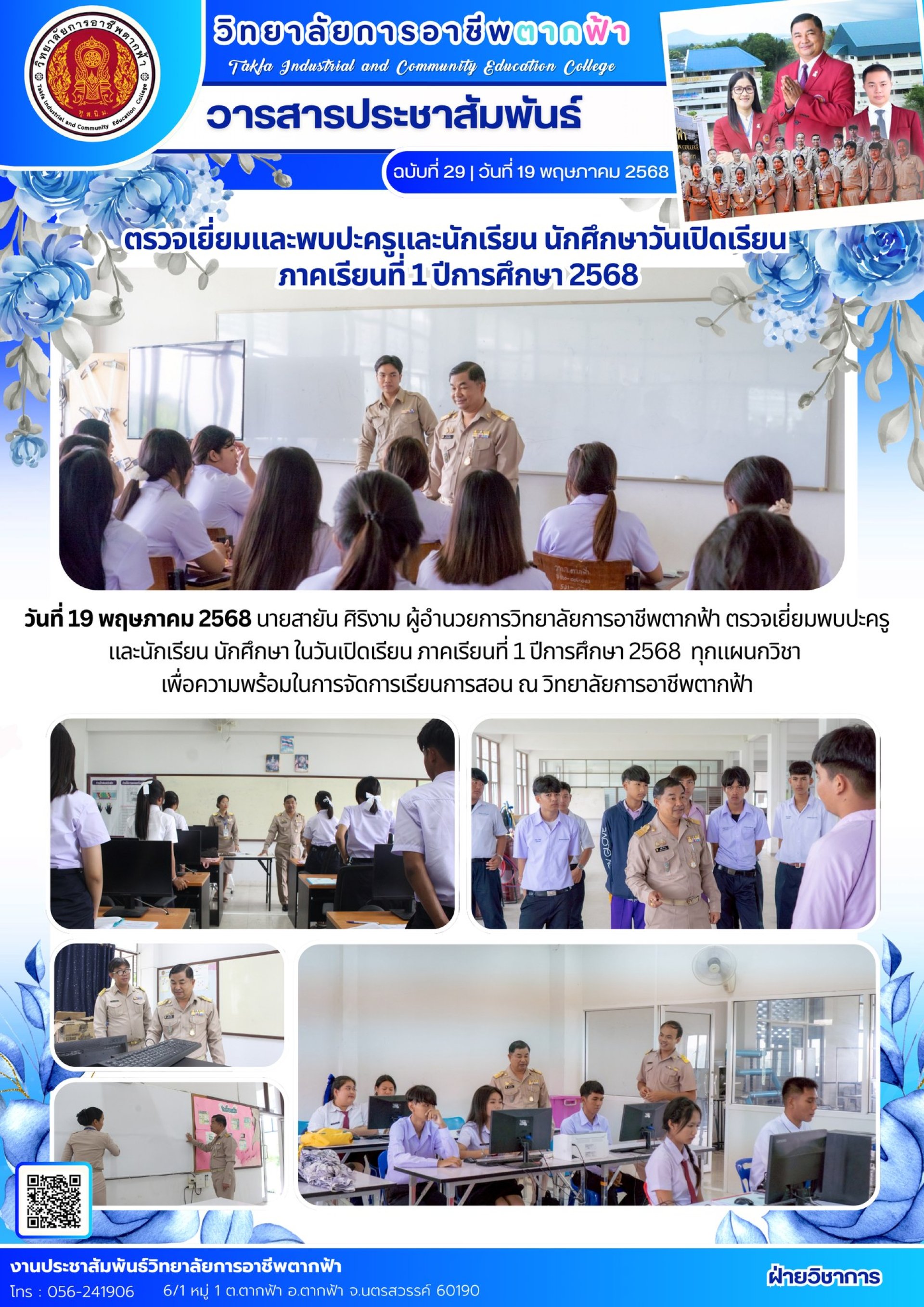 วารสารตากฟ้า ประจำเดือน พฤษภาคม 2568 ฉบับที่ 29 ตรวจเยี่ยมพบปะครูและนักเรียน นักศึกษา ในวันเปิดเรียน ภาคเรียนที่ 1 ปีการศึกษา 2568