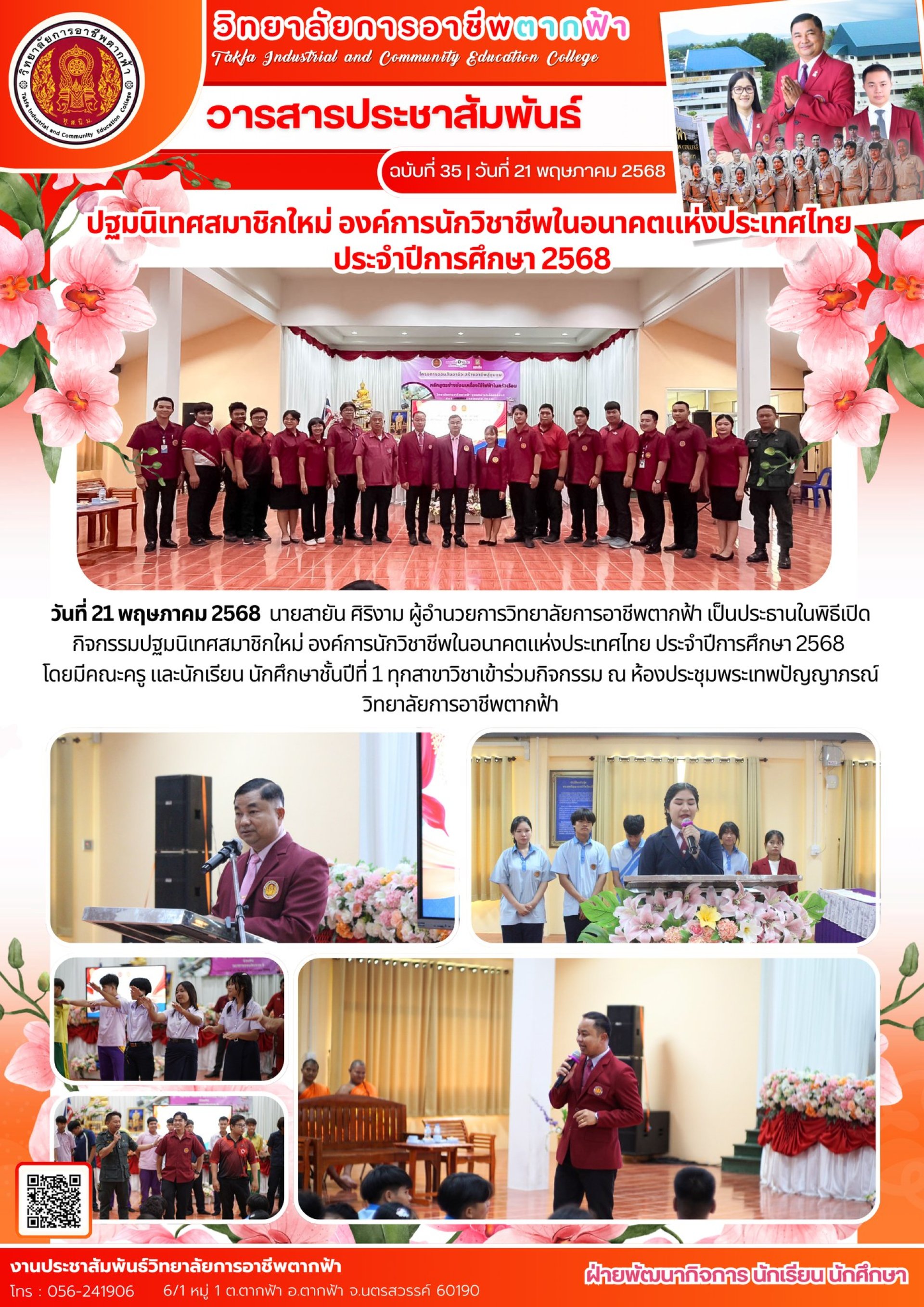 วารสารตากฟ้า ประจำเดือน พฤษภาคม 2568 ฉบับที่ 35 ปฐมนิเทศสมาชิกใหม่ องค์การนักวิชาชีพในอนาคตแห่งประเทศไทย ประจำปีการศึกษา 2568