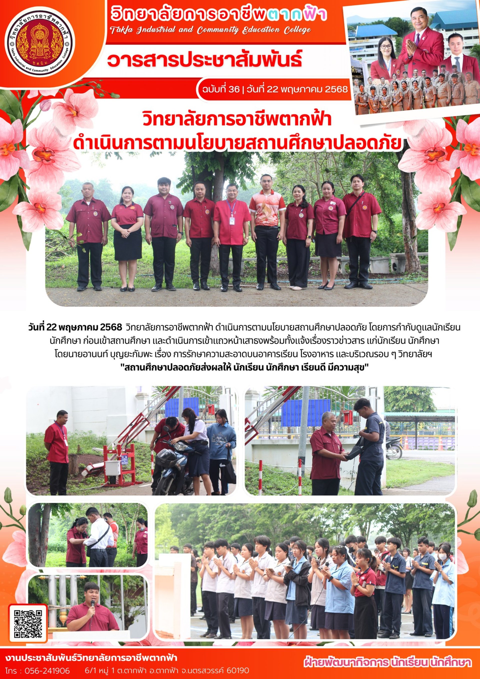 วารสารตากฟ้า ประจำเดือน พฤษภาคม 2568 ฉบับที่ 36 วิทยาลัยการอาชีพตากฟ้า ดำเนินการตามนโยบายสถานศึกษาปลอดภัย