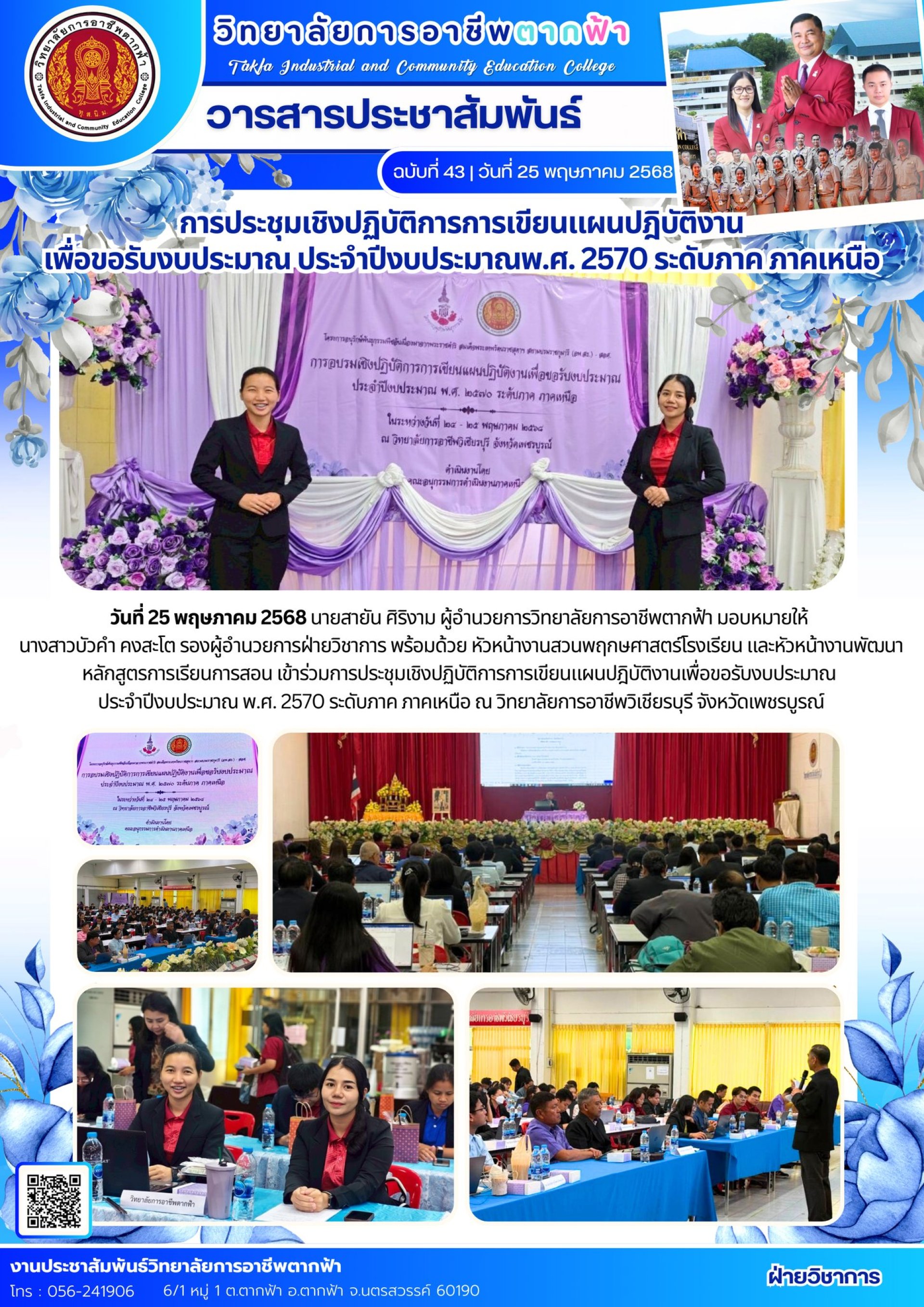 วารสารตากฟ้า ประจำเดือน พฤษภาคม 2568 ฉบับที่ 43 การประชุมเชิงปฏิบัติการการเขียนแผนปฎิบัติงานเพื่อขอรับงบประมาณ ประจำปีงบประมาณพ.ศ. 2570 ระดับภาค ภาคเหนือ