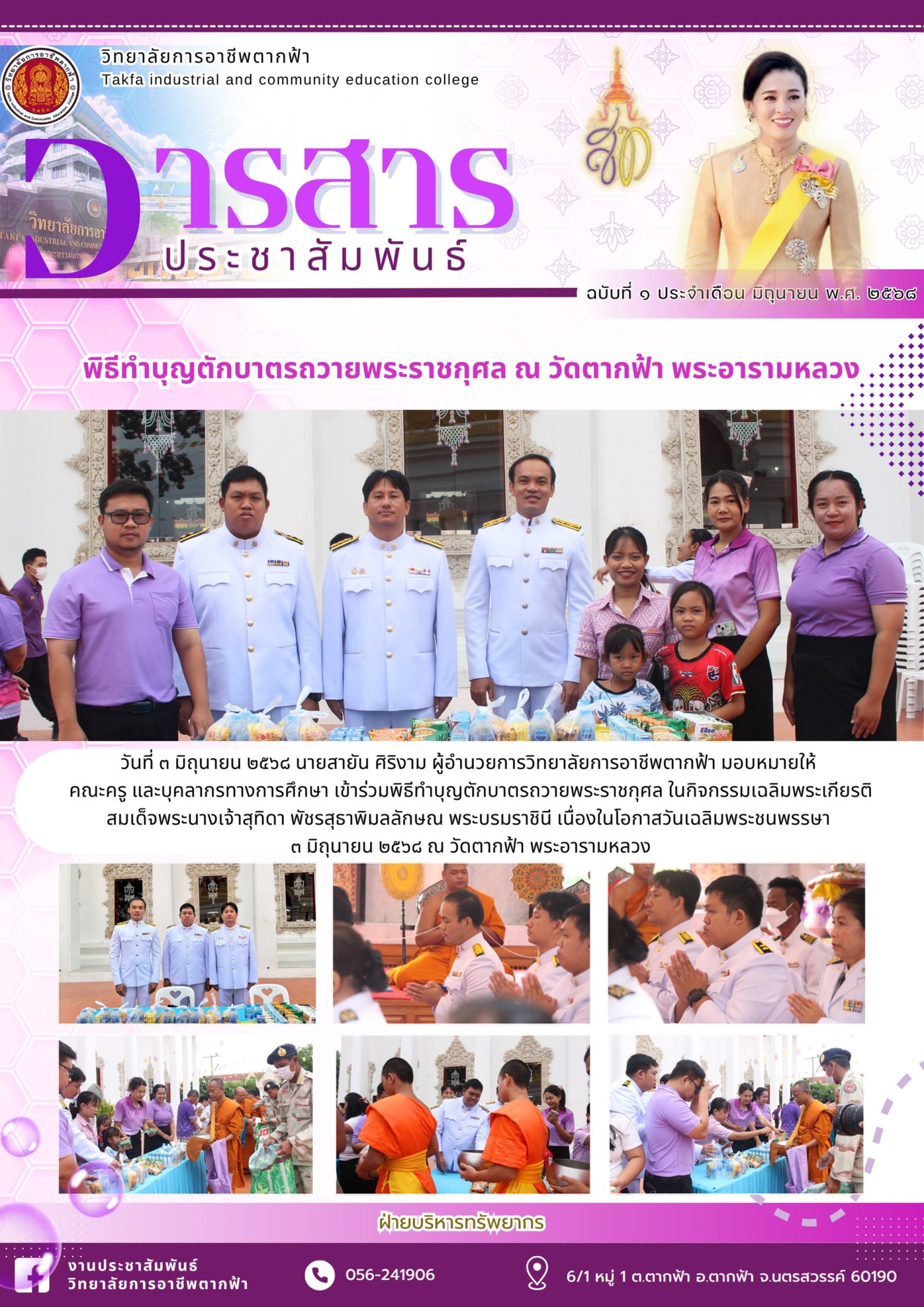 วารสารตากฟ้า ประจำเดือน มิถุนายน ๒๕๖๘ ฉบับที่ ๑ พิธีทำบุญตักบาตรถวายพระราชกุศล ณ วัดตากฟ้า พระอารามหลวง