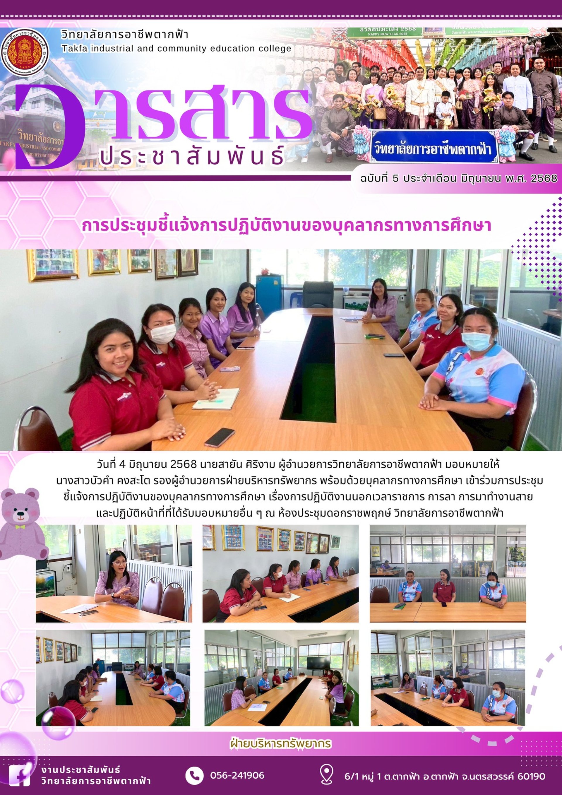 วารสารตากฟ้า ประจำเดือน มิถุนายน 2568 ฉบับที่ 5 การประชุมชี้แจ้งการปฏิบัติงานของบุคลากรทางการศึกษา