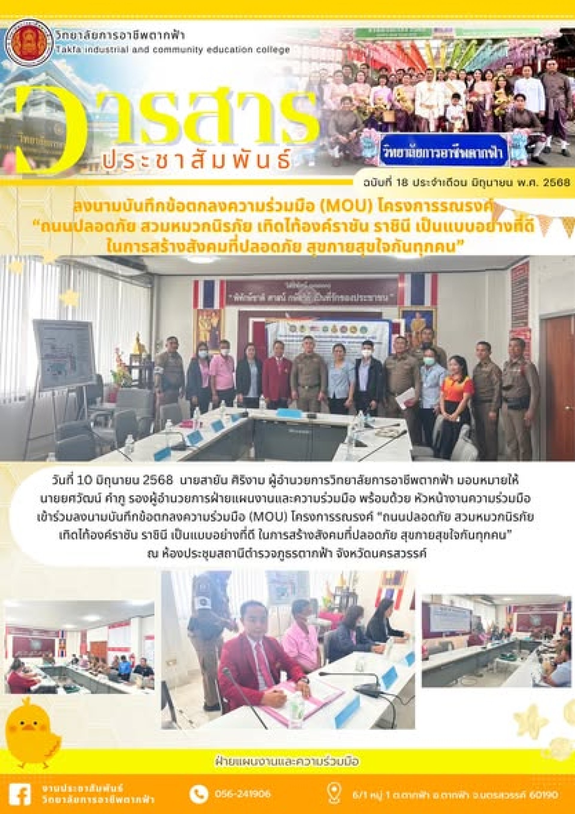 วารสารตากฟ้า ประจำเดือน มิถุนายน 2568 ฉบับที่ 18 ลงนามบันทึกข้อตกลงความร่วมมือ (MOU) โครงการรณรงค์ ถนนปลอดภัย สวมหมวกนิรภัย เทิดไท้องค์ราชัน ราชินี เป็นแบบอย่างที่ดี ในการสร้างสังคมที่ปลอดภัย สุขกายสุขใจกันทุกคน