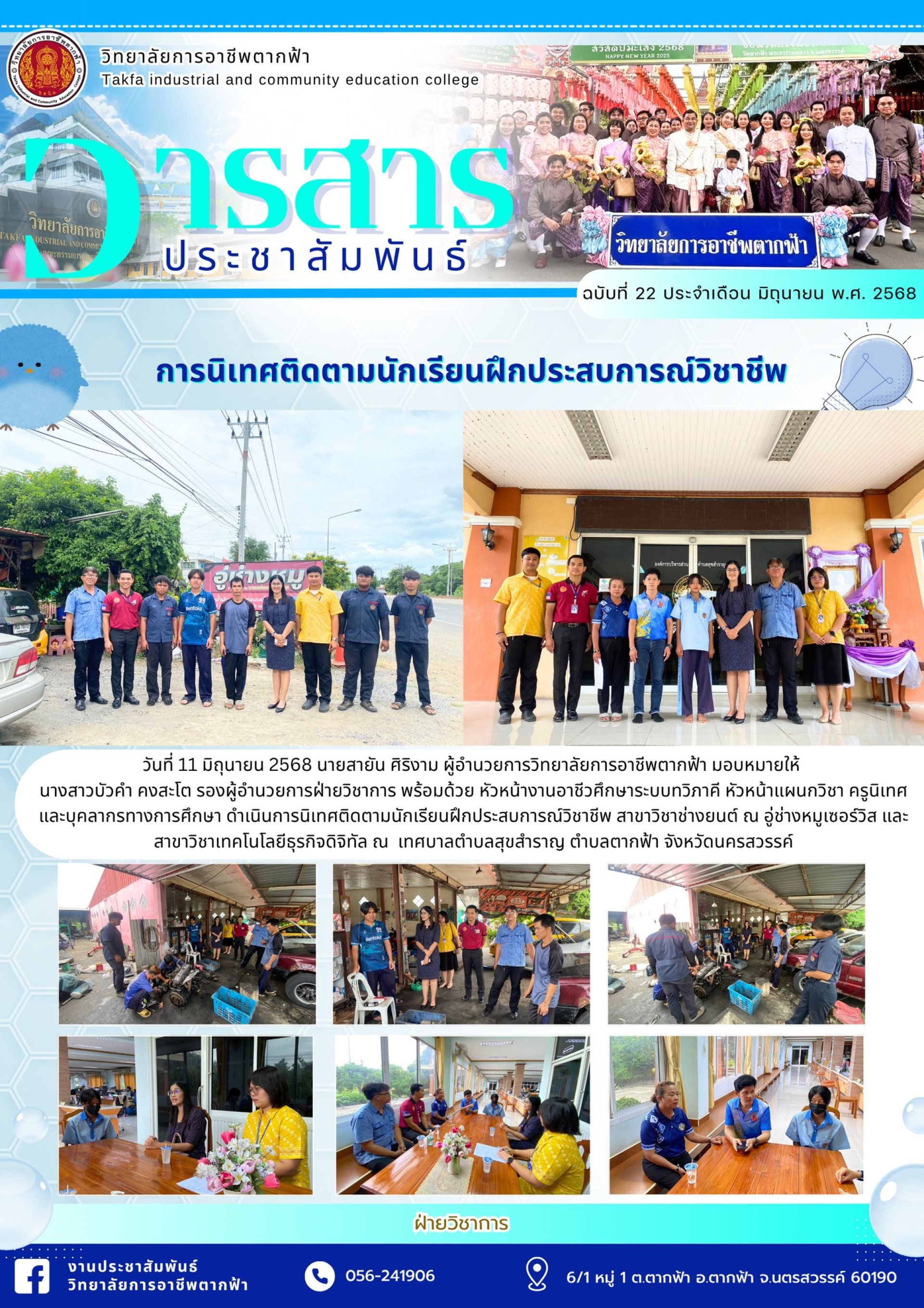 วารสารตากฟ้า ประจำเดือน มิถุนายน 2568 ฉบับที่ 22 การนิเทศติดตามนักเรียนฝึกประสบการณ์วิชาชีพ
