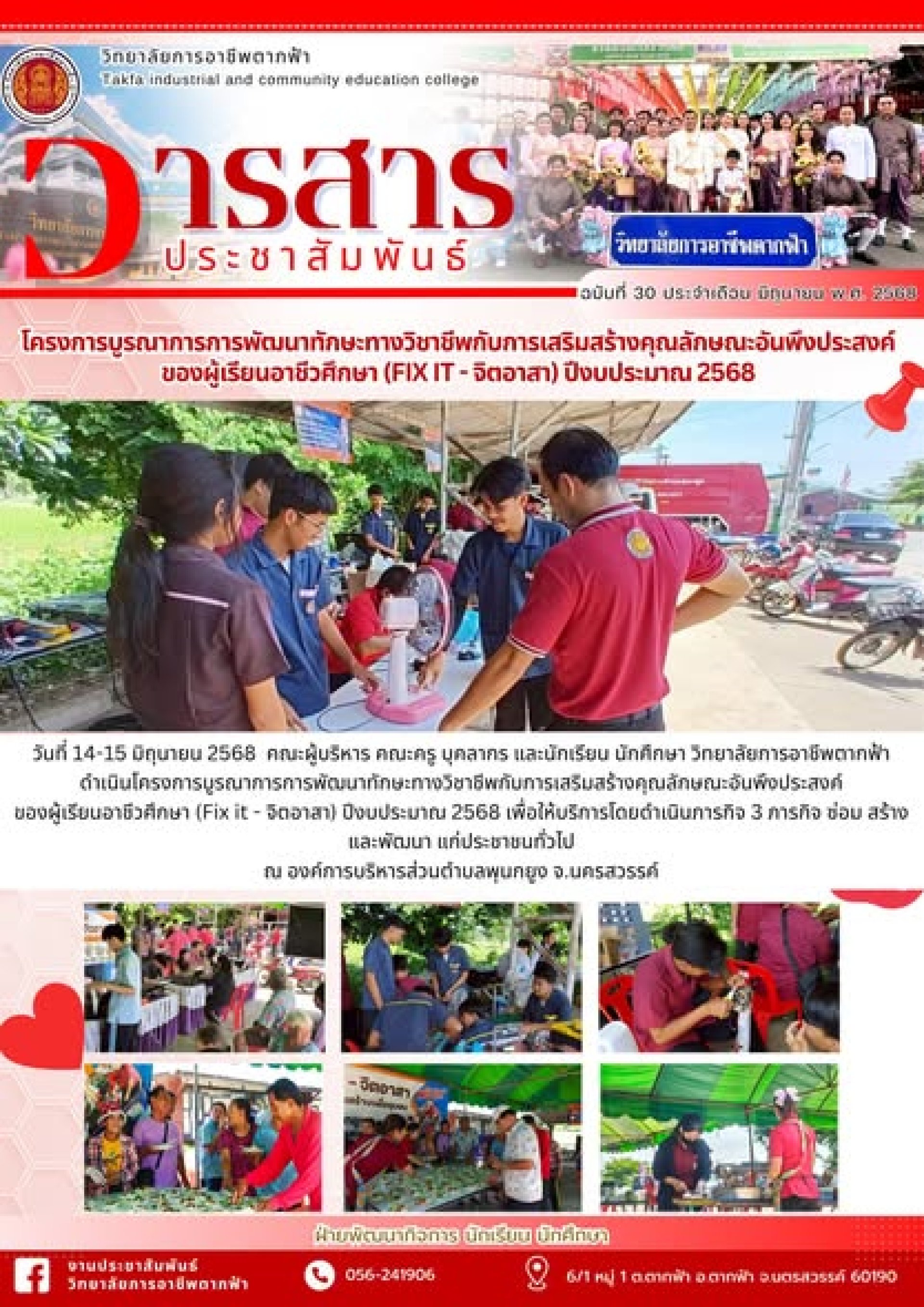 วารสารตากฟ้า ประจำเดือน มิถุนายน 2568 ฉบับที่ 30 โครงการบูรณาการการพัฒนาทักษะทางวิชาชีพกับการเสริมสร้างคุณลักษณะอันพึงประสงค์ของผู้เรียนอาชีวศึกษา (Fix it - จิตอาสา) ปีงบประมาณ 2568