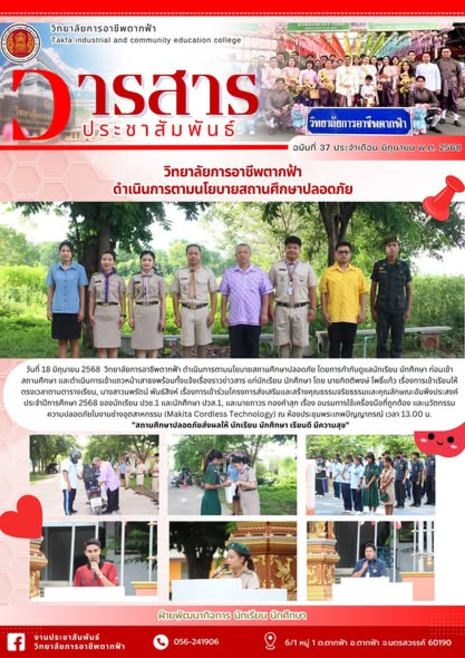 วารสารตากฟ้า ประจำเดือน มิถุนายน 2568 ฉบับที่ 37 วิทยาลัยการอาชีพตากฟ้า ดำเนินการตามนโยบายสถานศึกษาปลอดภัย