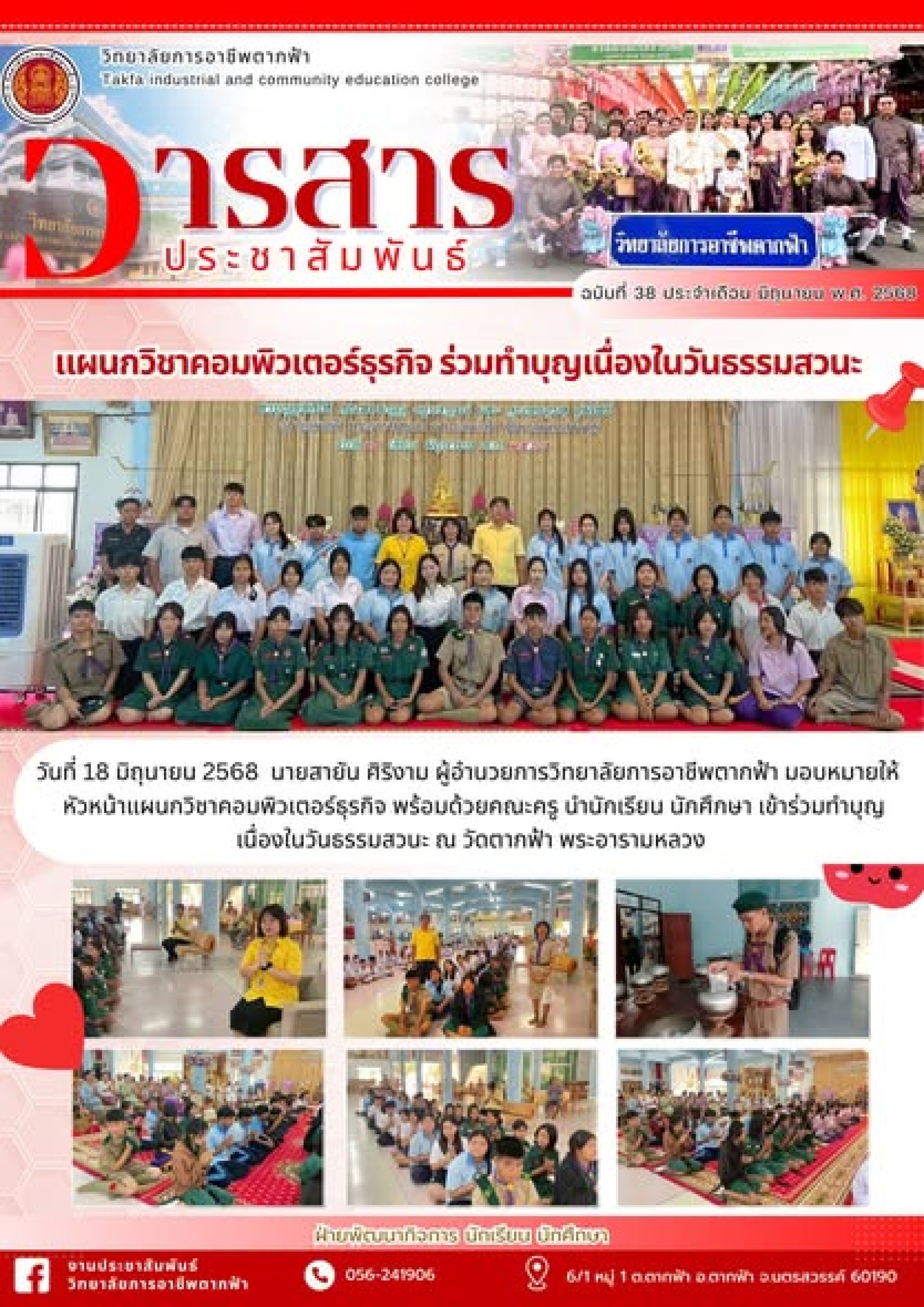 วารสารตากฟ้า ประจำเดือน มิถุนายน 2568 ฉบับที่ 38 แผนกวิชาคอมพิวเตอร์ธุรกิจ ร่วมทำบุญเนื่องในวันธรรมสวนะ