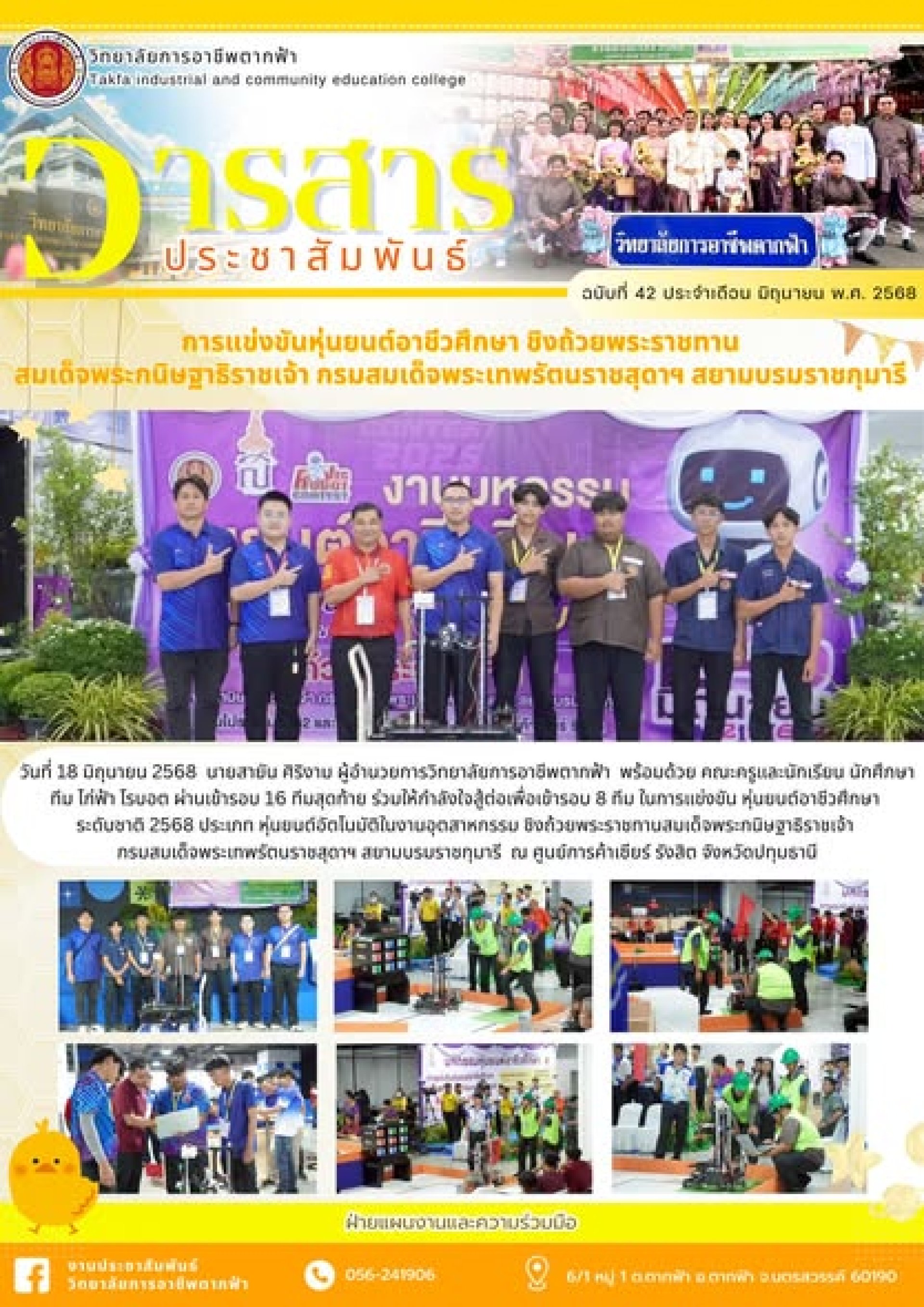 วารสารตากฟ้า ประจำเดือน มิถุนายน 2568 ฉบับที่ 42 การแข่งขันหุ่นยนต์อาชีวศึกษา ชิงถ้วยพระราชทานสมเด็จพระกนิษฐาธิราชเจ้า กรมสมเด็จพระเทพรัตนราชสุดาฯ สยามบรมราชกุมารี