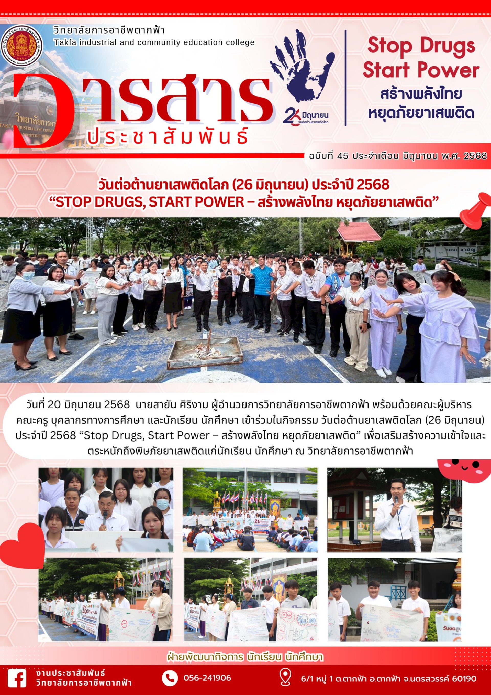 วารสารตากฟ้า ประจำเดือน มิถุนายน 2568 ฉบับที่ 45 วันต่อต้านยาเสพติดโลก (26 มิถุนายน) ประจำปี 2568 Stop Drugs, Start Power สร้างพลังไทย หยุดภัยยาเสพติด