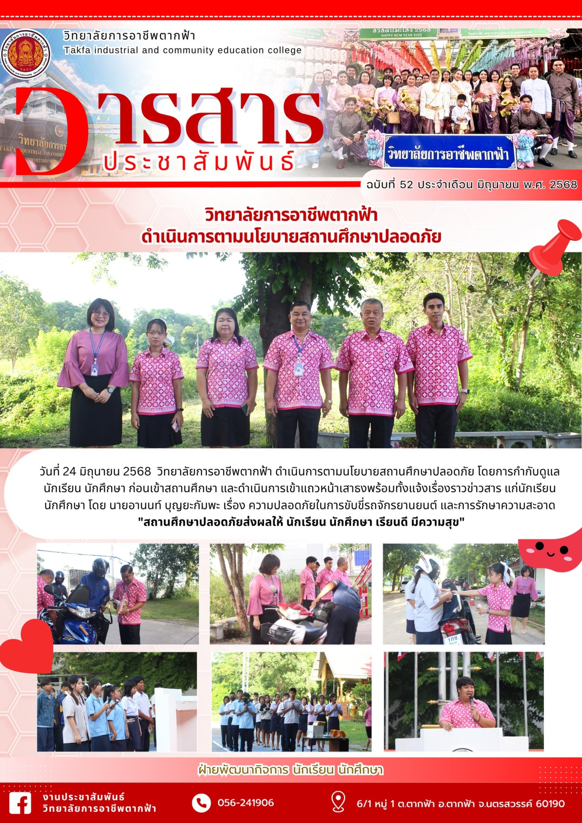 วารสารตากฟ้า ประจำเดือน มิถุนายน 2568 ฉบับที่ 52 วิทยาลัยการอาชีพตากฟ้า ดำเนินการตามนโยบายสถานศึกษาปลอดภัย