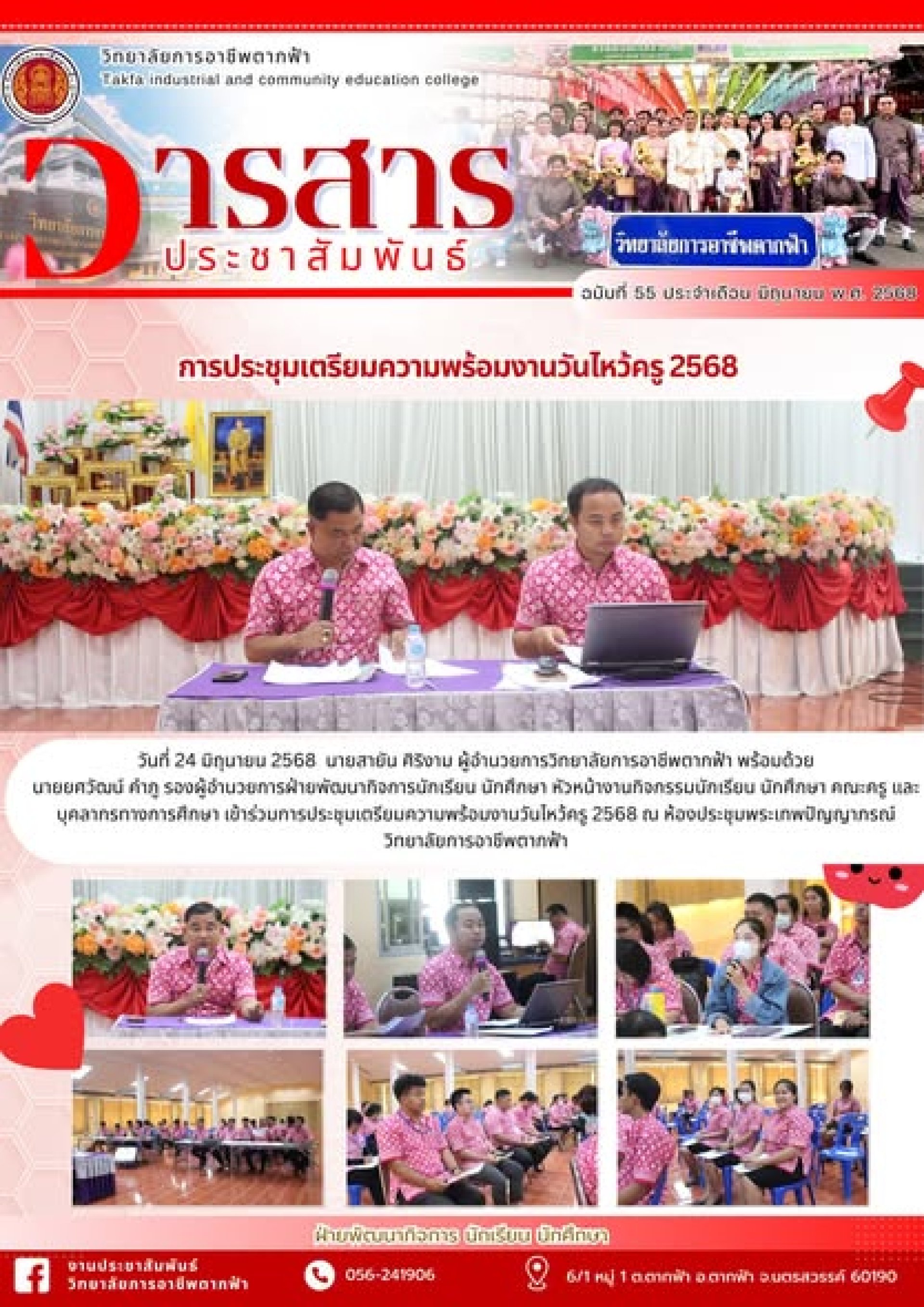 วารสารตากฟ้า ประจำเดือน มิถุนายน 2568 ฉบับที่ 55 การประชุมเตรียมความพร้อมงานวันไหว้ครู 2568