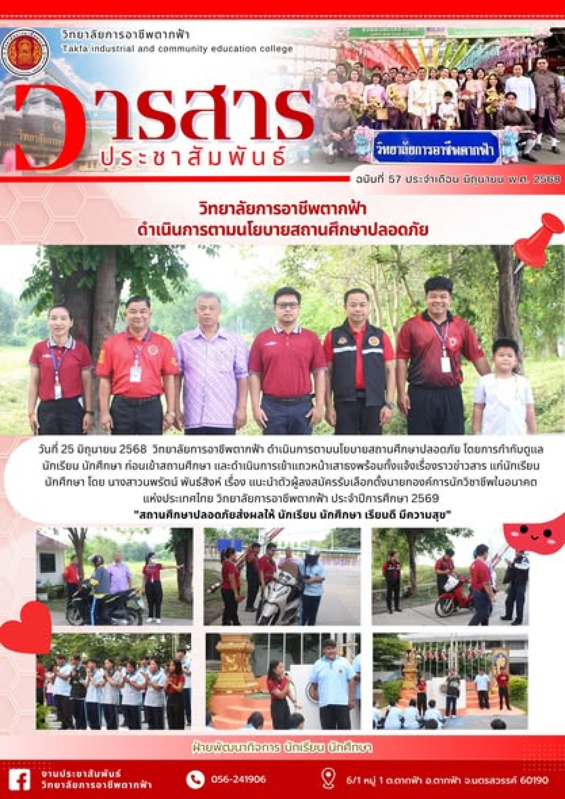 วารสารตากฟ้า ประจำเดือน มิถุนายน 2568 ฉบับที่ 57 วิทยาลัยการอาชีพตากฟ้า ดำเนินการตามนโยบายสถานศึกษาปลอดภัย