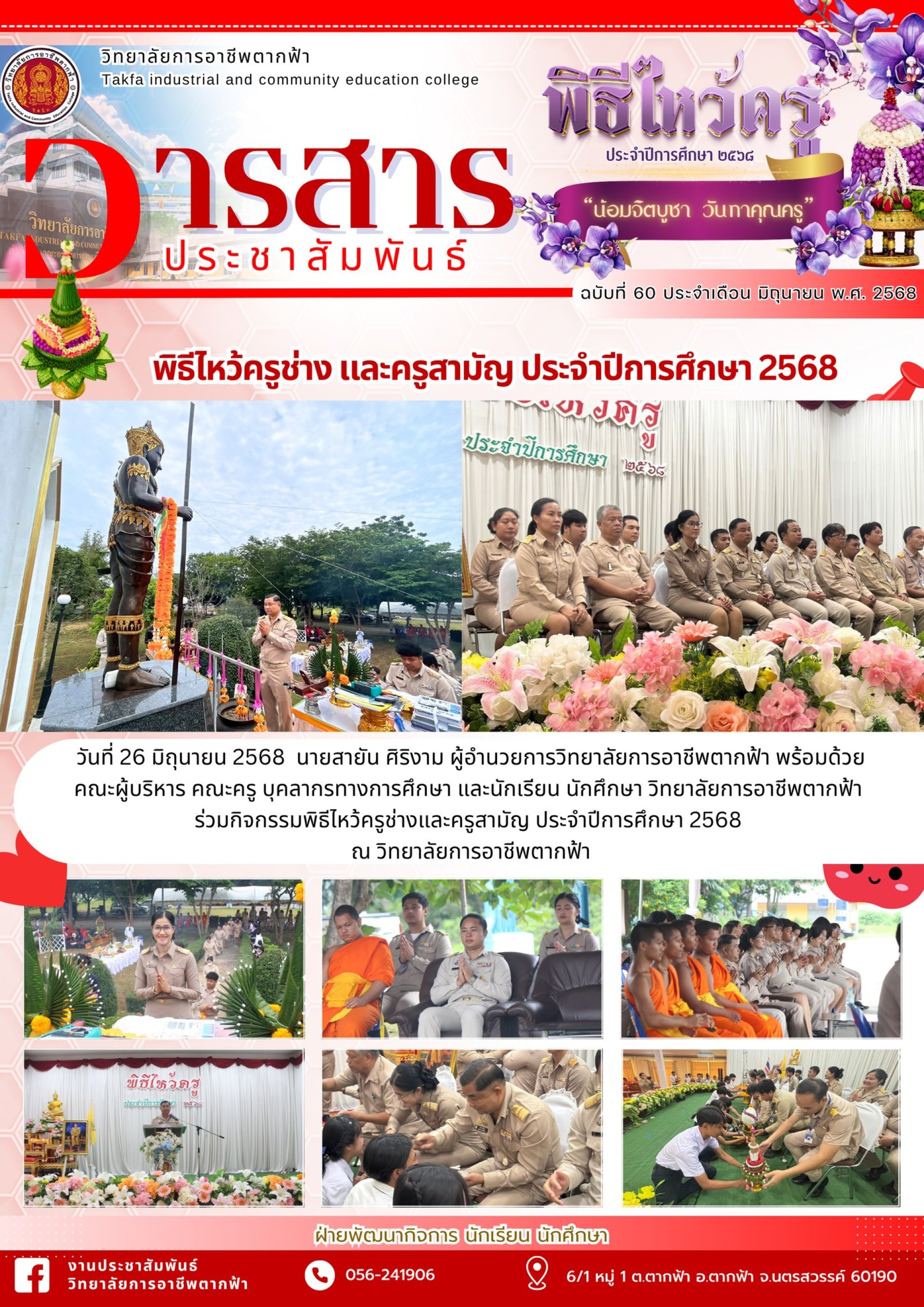 วารสารตากฟ้า ประจำเดือน มิถุนายน 2568 ฉบับที่ 60 พิธีไหว้ครูช่าง และครูสามัญ ประจำปีการศึกษา 2568