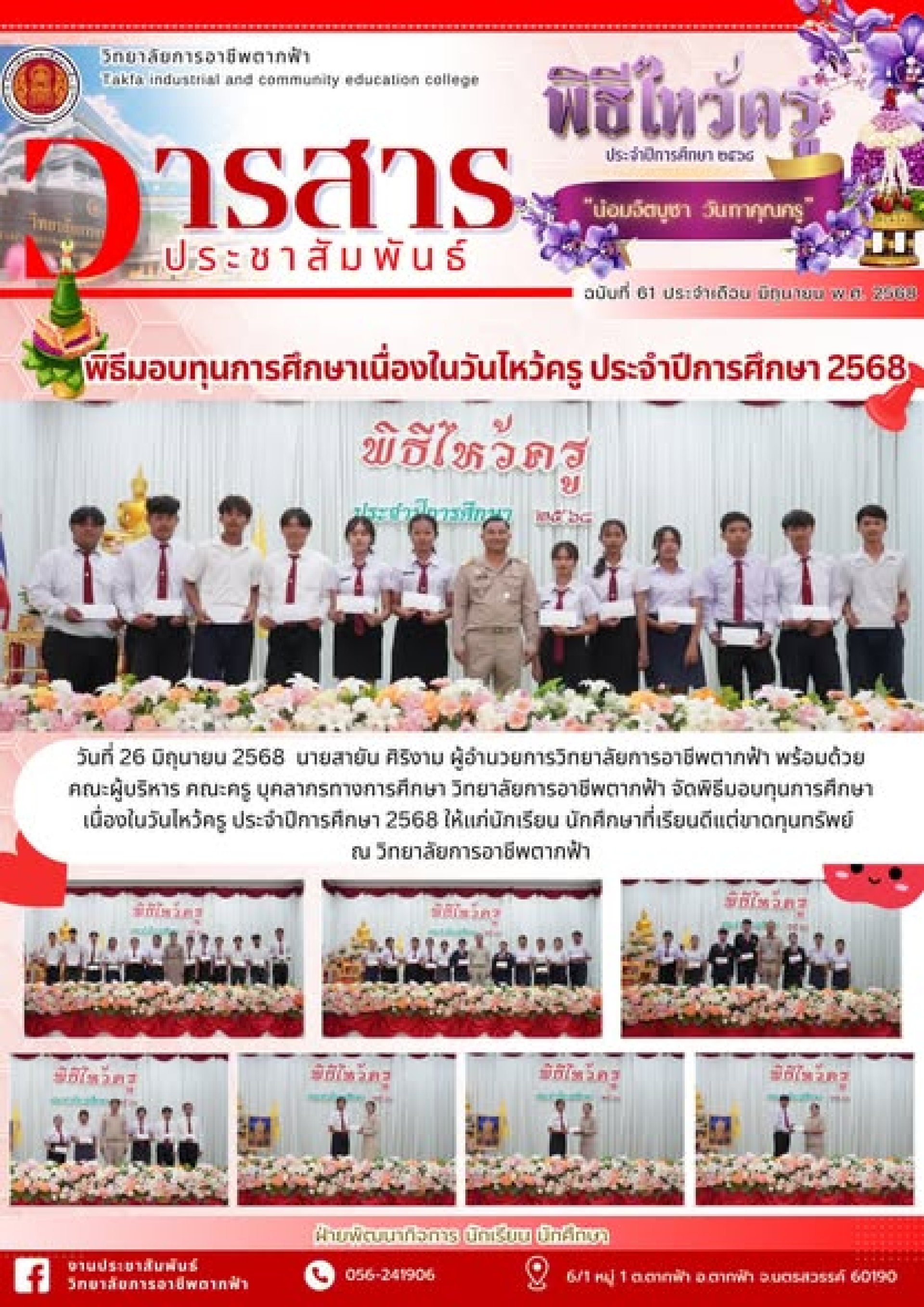 วารสารตากฟ้า ประจำเดือน มิถุนายน 2568 ฉบับที่ 61 พิธีมอบทุนการศึกษาเนื่องในวันไหว้ครู ประจำปีการศึกษา 2568