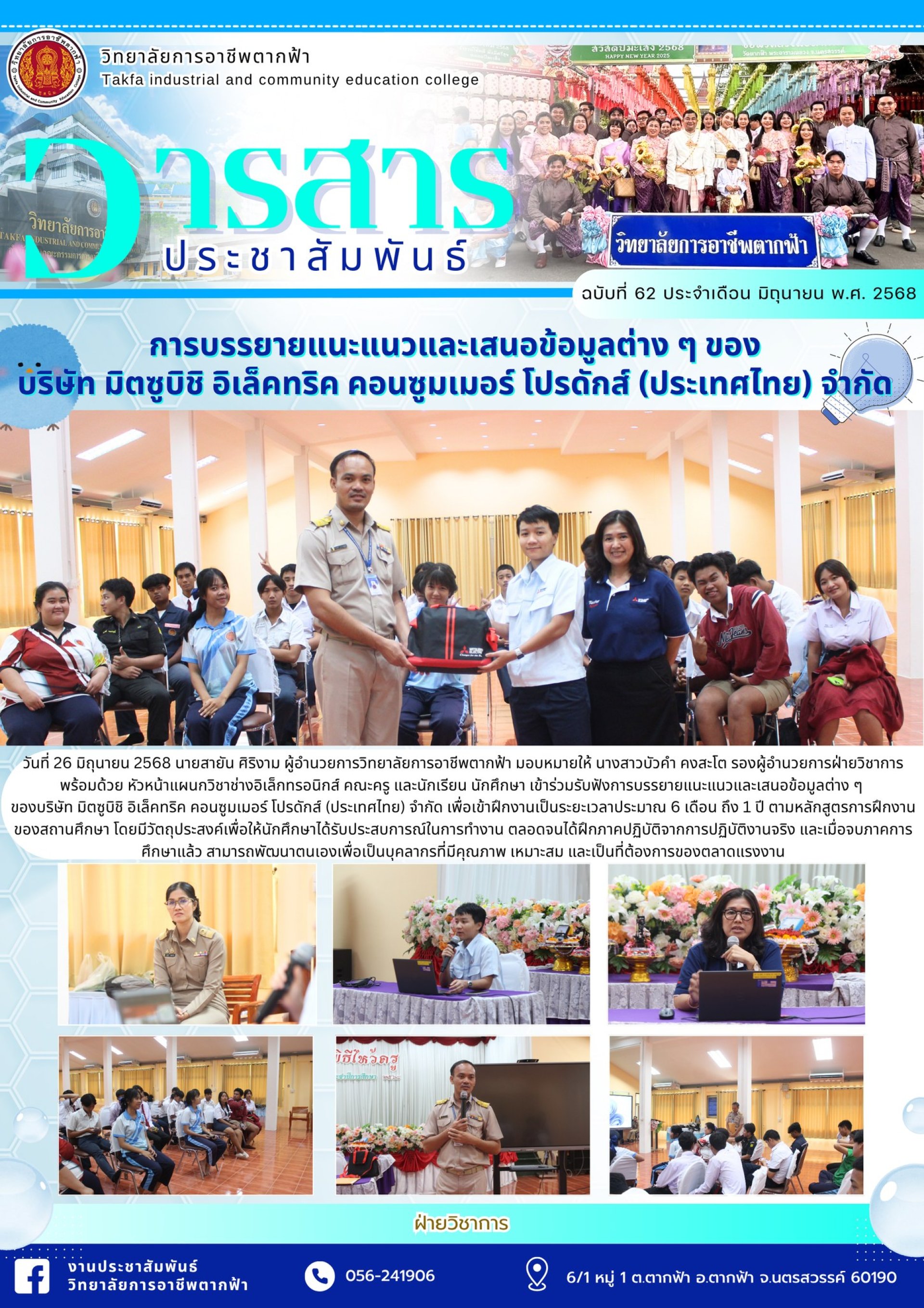 วารสารตากฟ้า ประจำเดือน มิถุนายน 2568 ฉบับที่ 62 การบรรยายแนะแนวและเสนอข้อมูลต่าง ๆ ของบริษัท มิตซูบิชิ อิเล็คทริค คอนซูมเมอร์ โปรดักส์ (ประเทศไทย) จำกัด