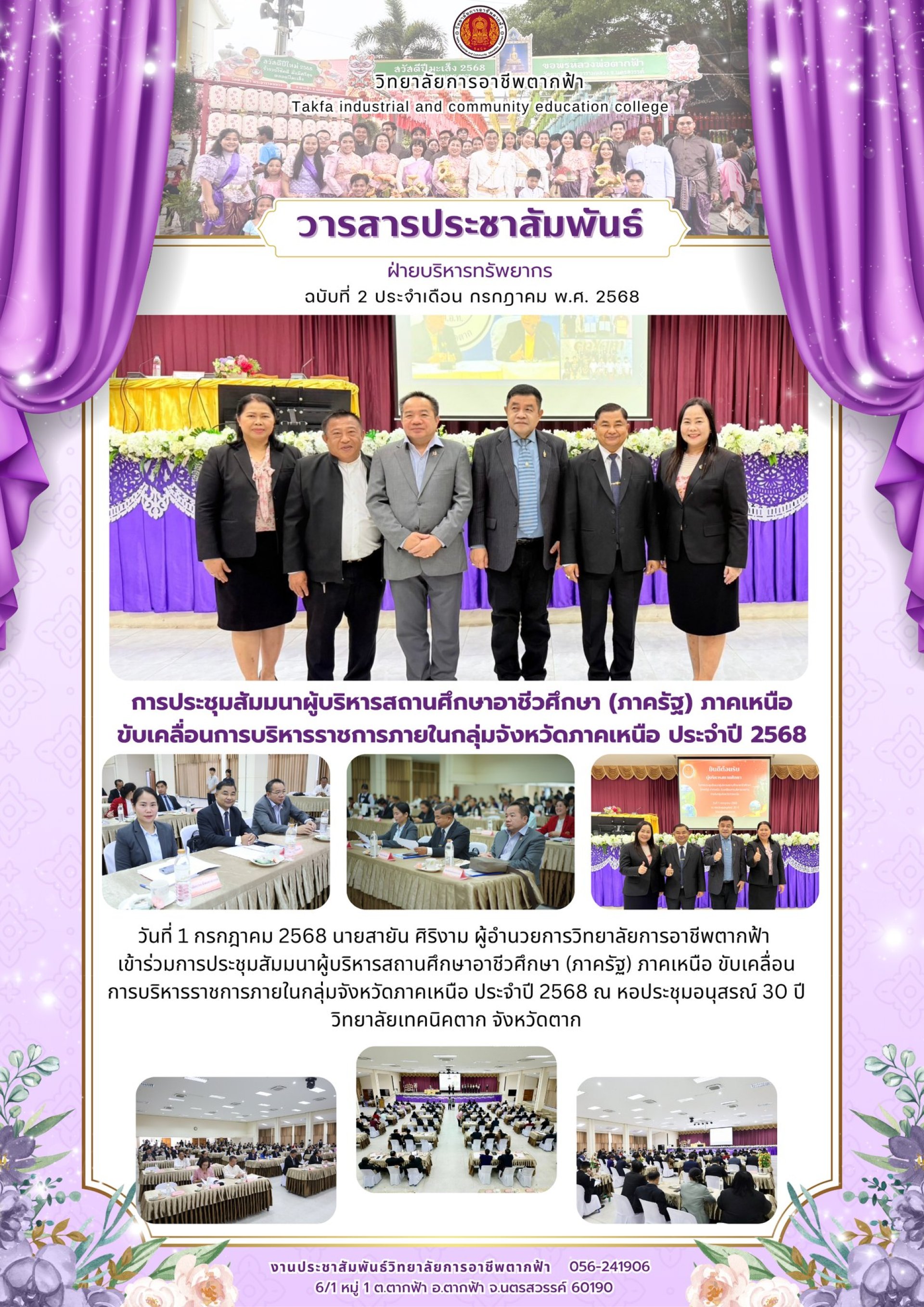 วารสารตากฟ้า ประจำเดือน กรกฎาคม 2568 ฉบับที่ 2 การประชุมสัมมนาผู้บริหารสถานศึกษาอาชีวศึกษา (ภาครัฐ) ภาคเหนือ ขับเคลื่อนการบริหารราชการภายในกลุ่มจังหวัดภาคเหนือ ประจำปี 2568