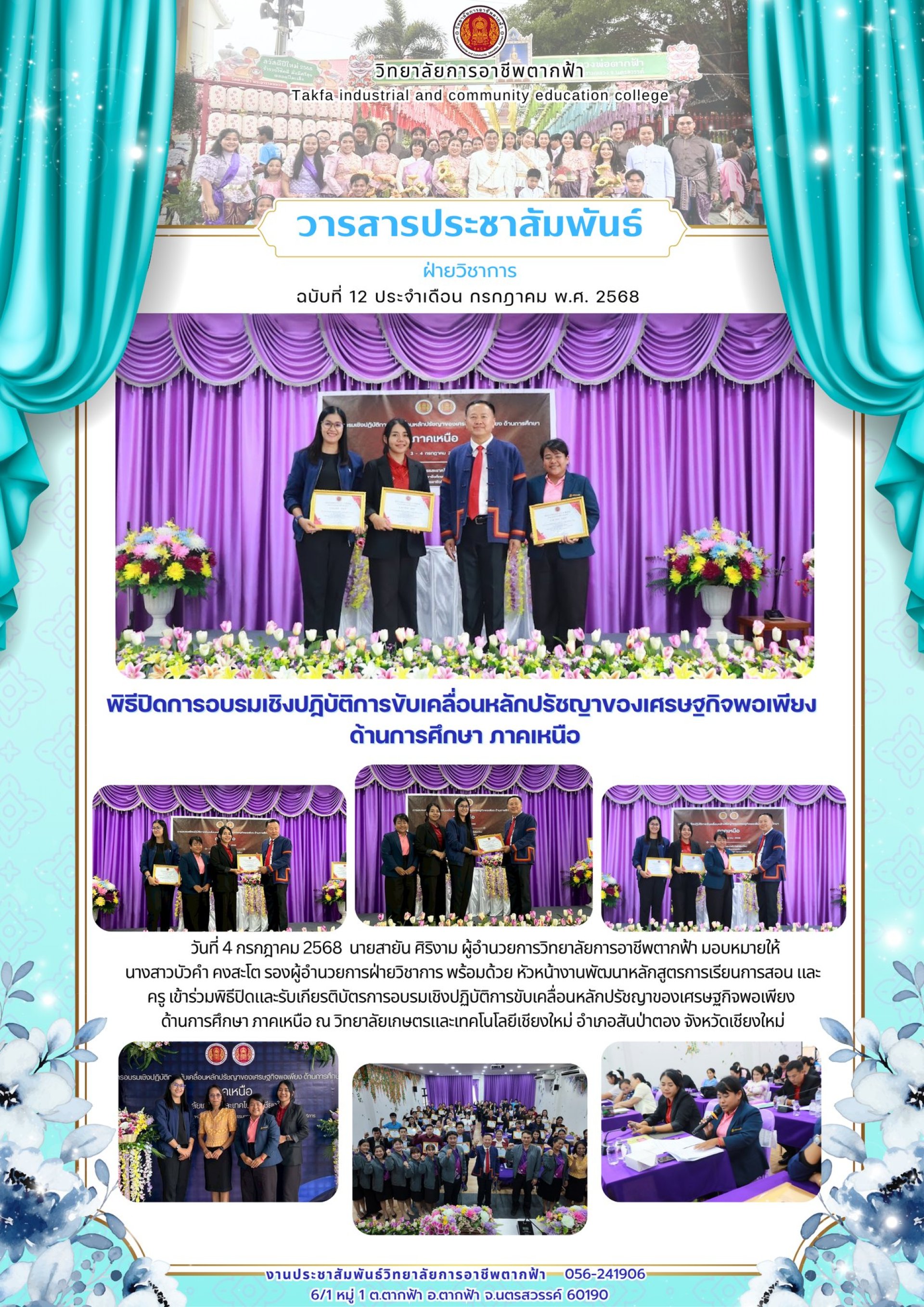 วารสารตากฟ้า ประจำเดือน กรกฎาคม 2568 ฉบับที่ 12 พิธีปิดการอบรมเชิงปฏิบัติการขับเคลื่อนหลักปรัชญาของเศรษฐกิจพอเพียง ด้านการศึกษา ภาคเหนือ