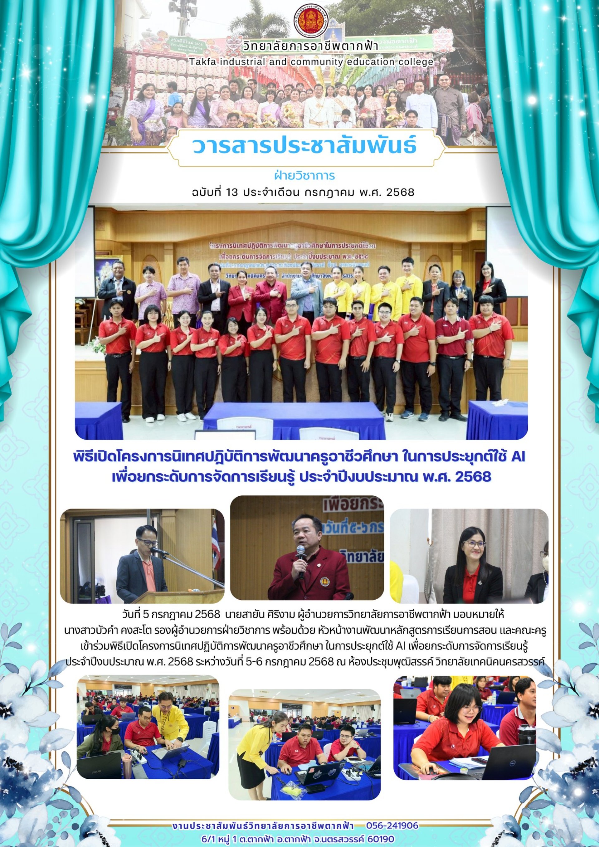 วารสารตากฟ้า ประจำเดือน กรกฎาคม 2568 ฉบับที่ 13 พิธีเปิดโครงการนิเทศปฏิบัติการพัฒนาครูอาชีวศึกษา ในการประยุกต์ใช้ AI เพื่อยกระดับการจัดการเรียนรู้ ประจำปีงบประมาณ พ.ศ. 2568