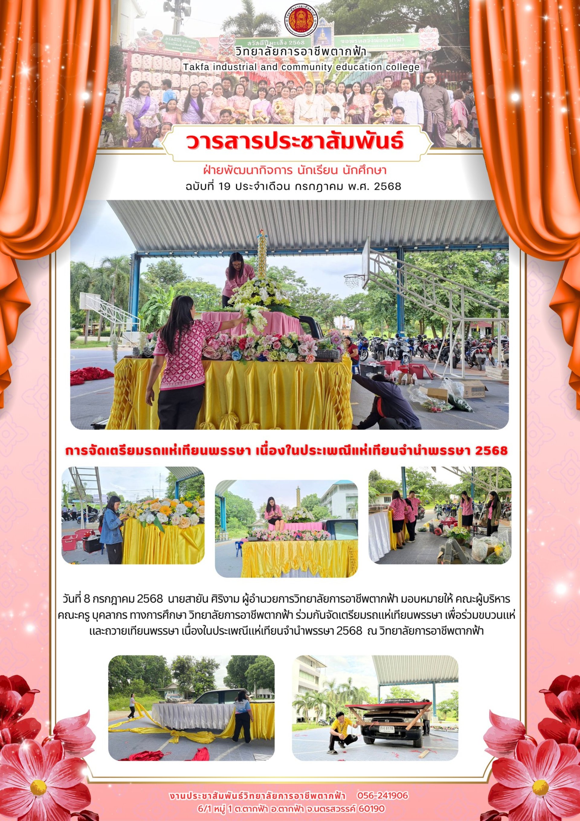 วารสารตากฟ้า ประจำเดือน กรกฎาคม 2568 ฉบับที่ 19 การจัดเตรียมรถแห่เทียนพรรษา เนื่องในประเพณีแห่เทียนจำนำพรรษา 2568