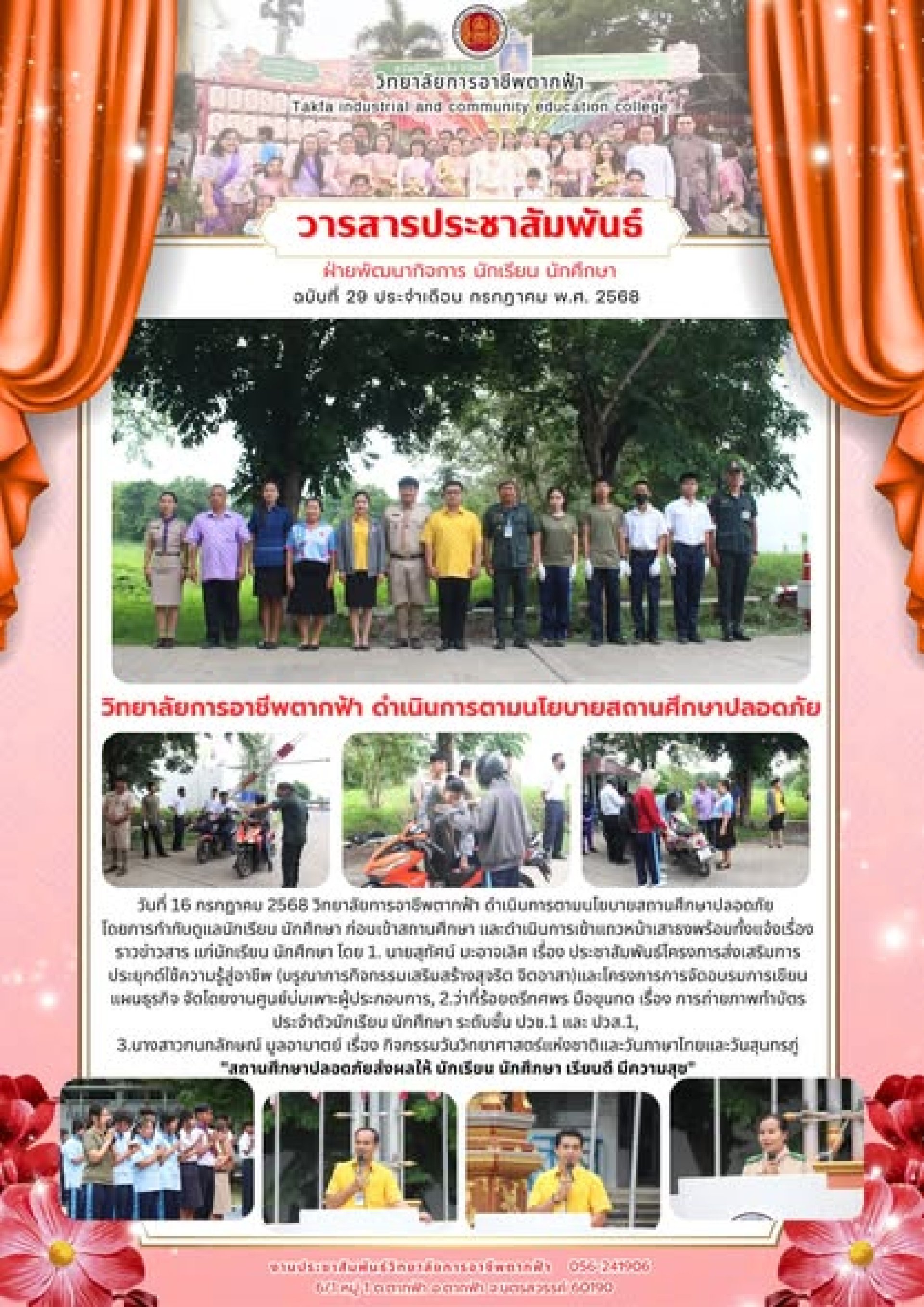 วารสารตากฟ้า ประจำเดือน กรกฎาคม 2568 ฉบับที่ 29 วิทยาลัยการอาชีพตากฟ้า ดำเนินการตามนโยบายสถานศึกษาปลอดภัย