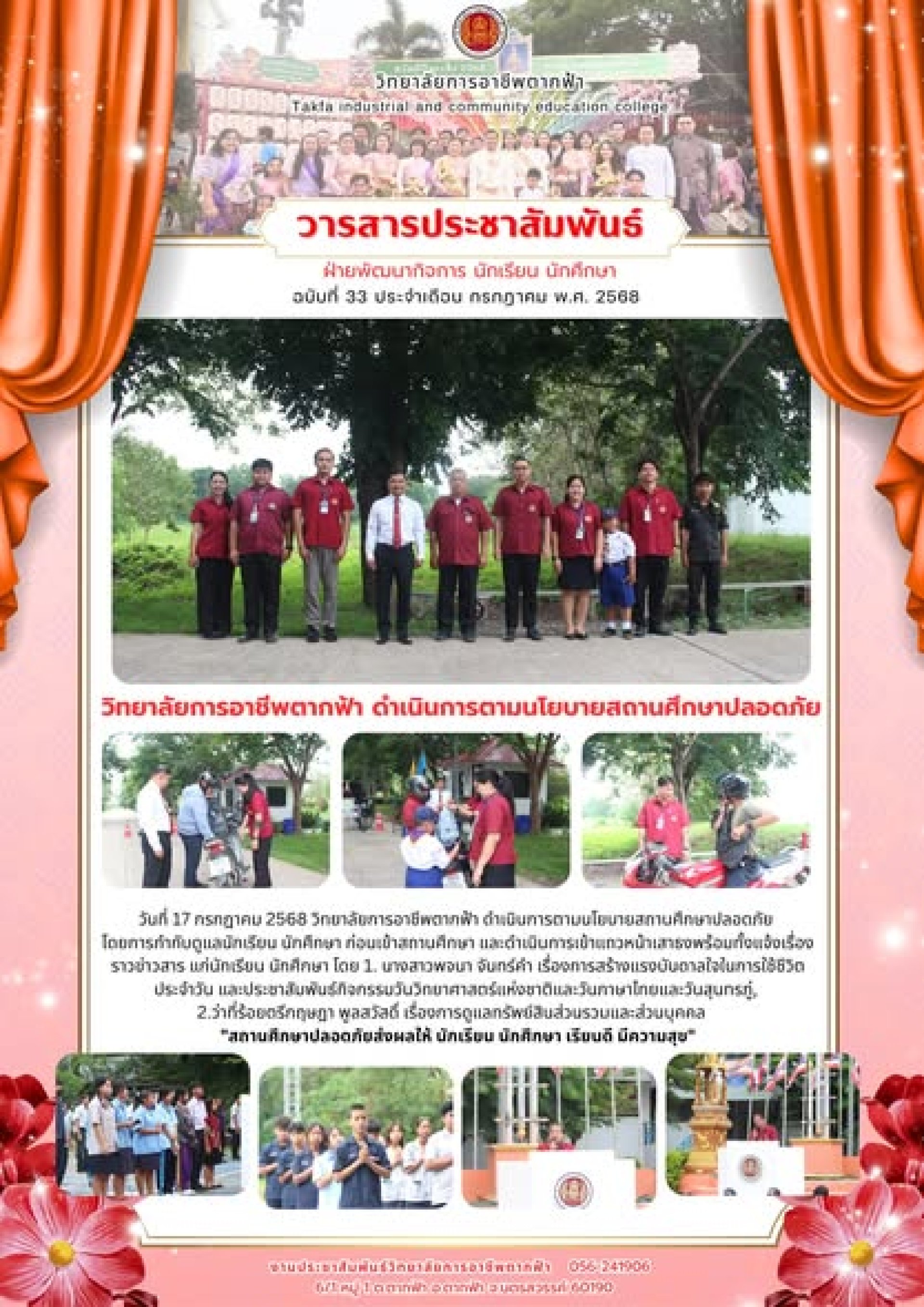 วารสารตากฟ้า ประจำเดือน กรกฎาคม 2568 ฉบับที่ 33 วิทยาลัยการอาชีพตากฟ้า ดำเนินการตามนโยบายสถานศึกษาปลอดภัย