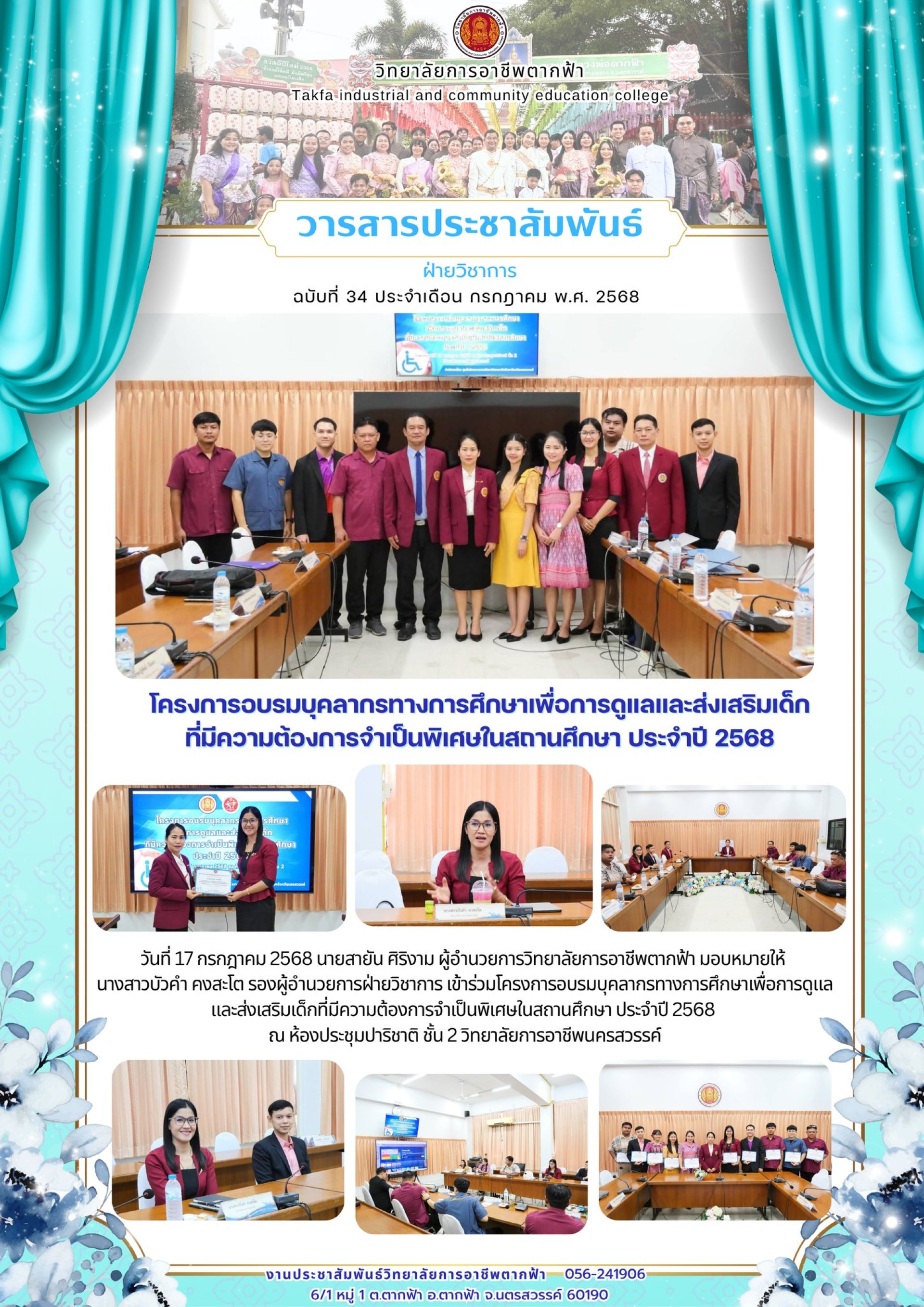 วารสารตากฟ้า ประจำเดือน กรกฎาคม 2568 ฉบับที่ 34 โครงการอบรมบุคลากรทางการศึกษาเพื่อการดูแลและส่งเสริมเด็กที่มีความต้องการจำเป็นพิเศษในสถานศึกษา ประจำปี 2568