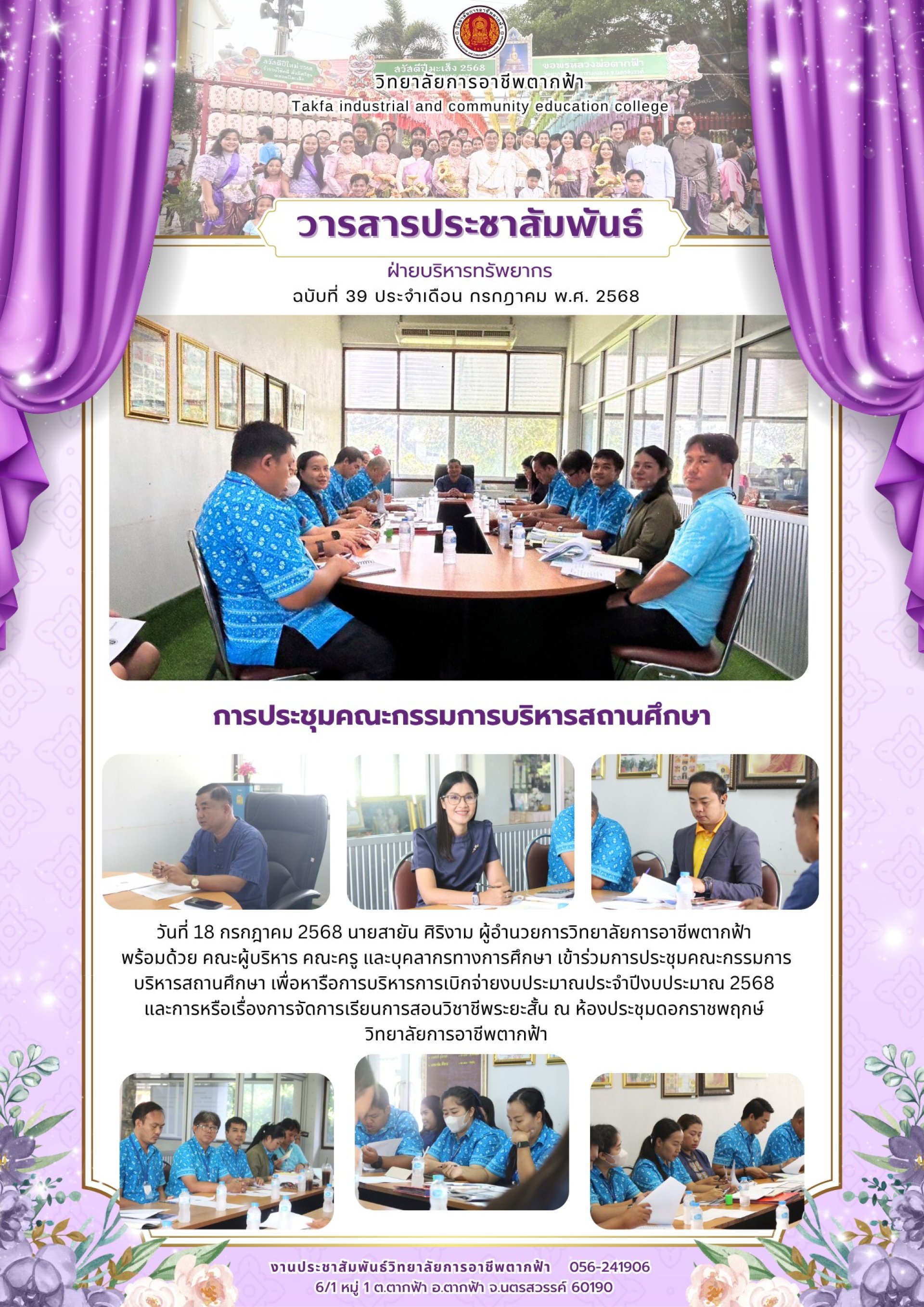 วารสารตากฟ้า ประจำเดือน กรกฎาคม 2568 ฉบับที่ 39 การประชุมคณะกรรมการบริหารสถานศึกษา