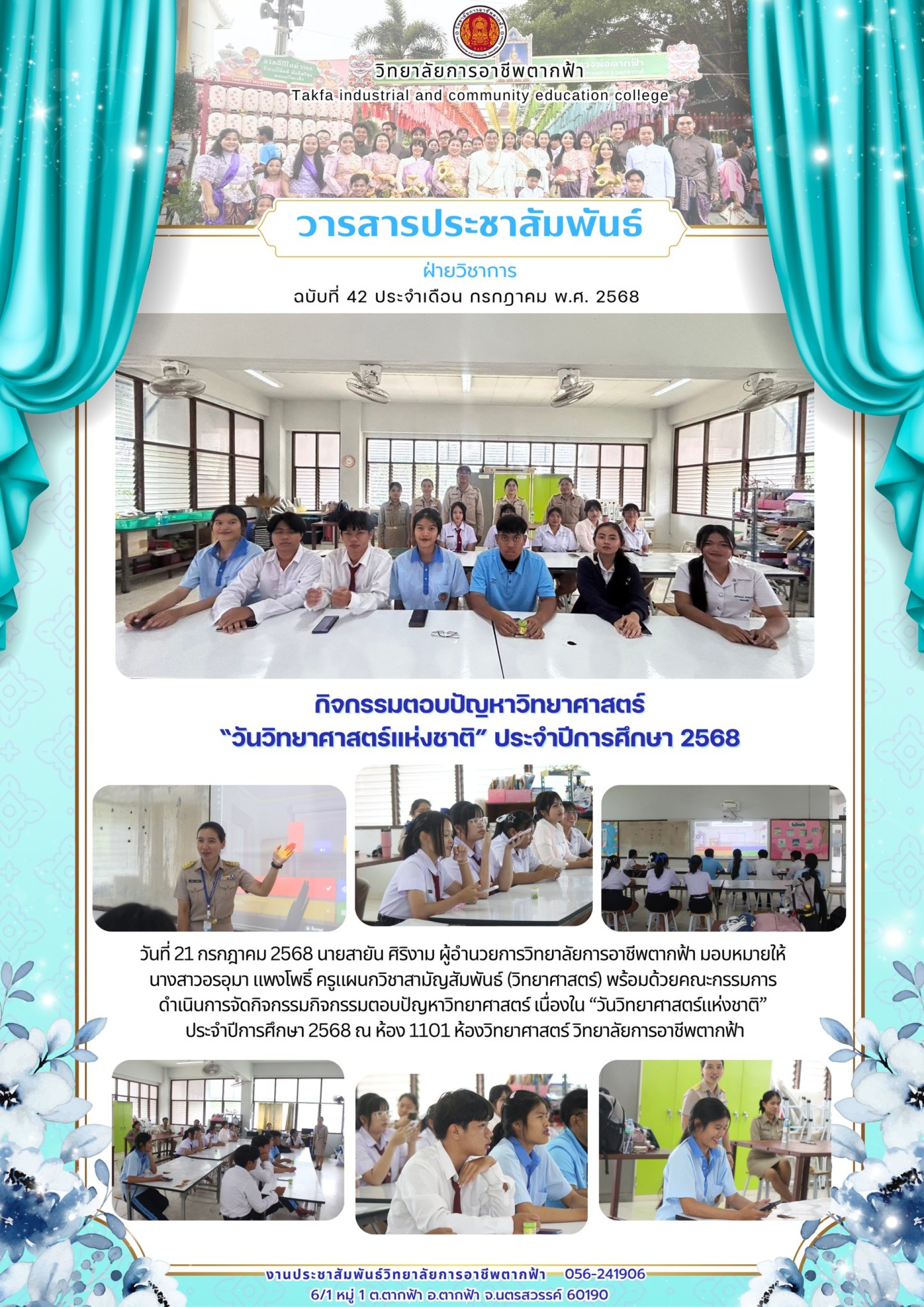 วารสารตากฟ้า ประจำเดือน กรกฎาคม 2568 ฉบับที่ 42 กิจกรรมตอบปัญหาวิทยาศาสตร์ วันวิทยาศาสตร์แห่งชาติ ประจำปีการศึกษา 2568