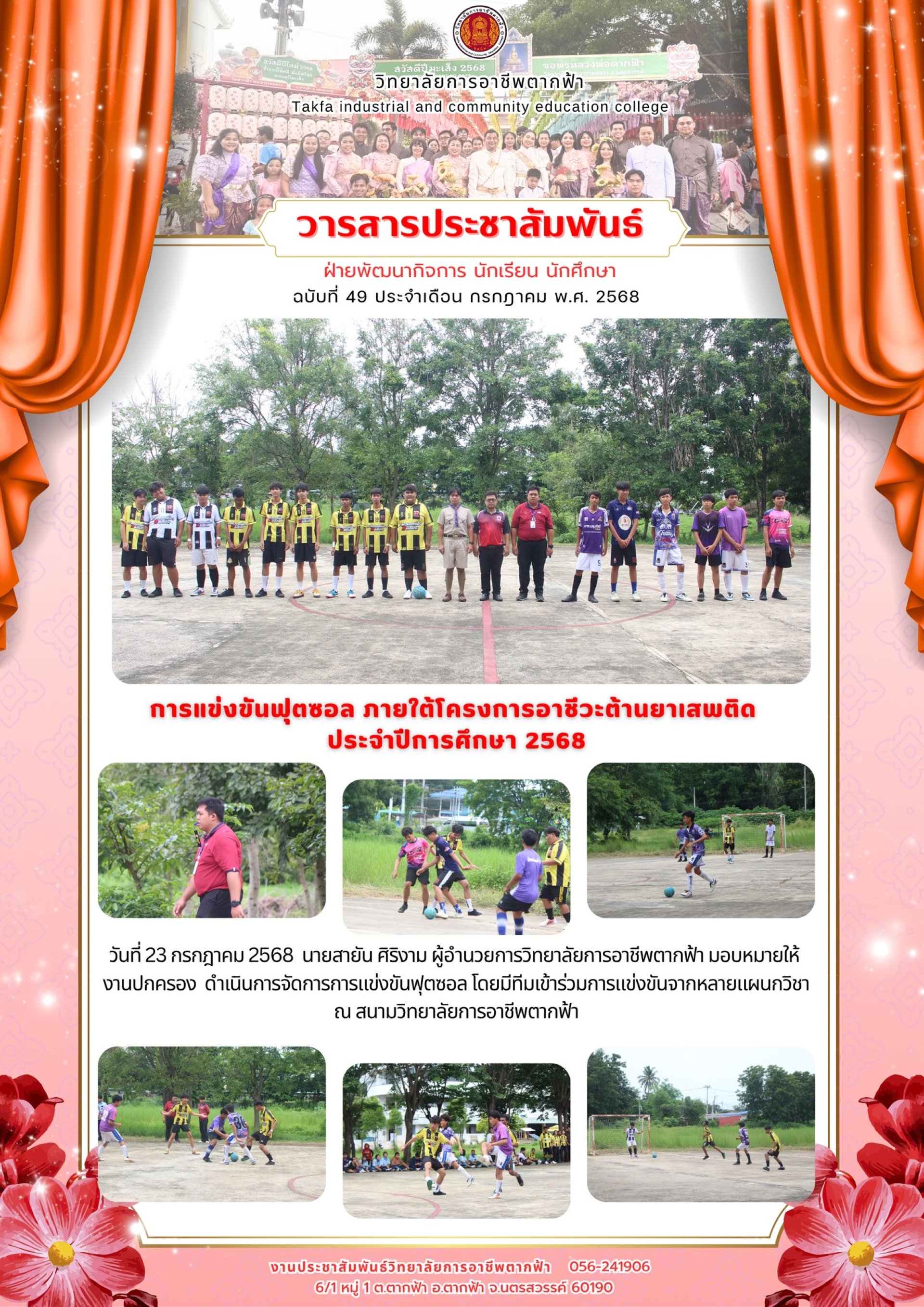 วารสารตากฟ้า ประจำเดือน กรกฎาคม 2568 ฉบับที่ 49 การแข่งขันฟุตซอล ภายใต้โครงการอาชีวะต้านยาเสพติด ประจำปีการศึกษา 2568