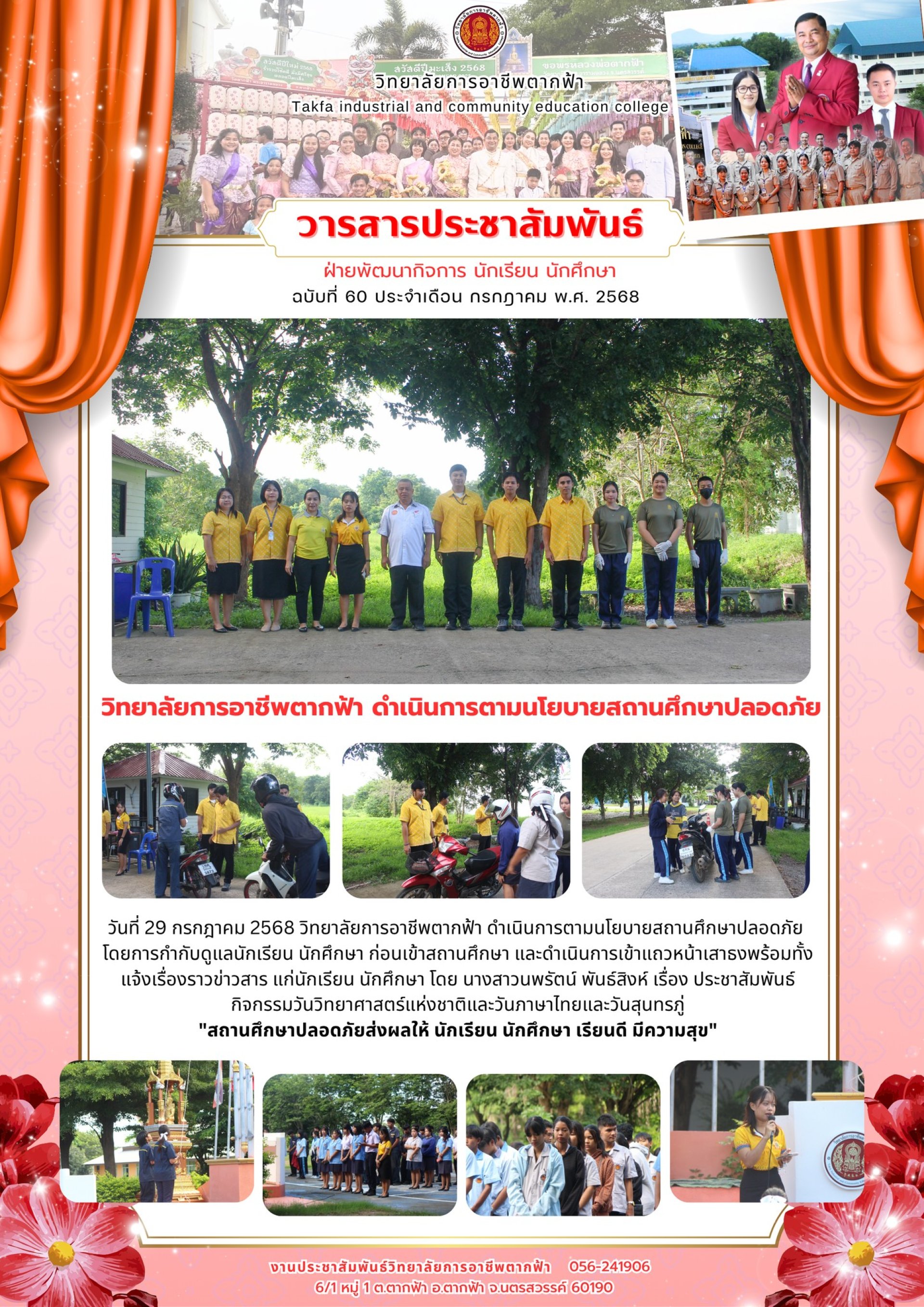 วารสารตากฟ้า ประจำเดือน กรกฎาคม 2568 ฉบับที่ 60 วิทยาลัยการอาชีพตากฟ้า ดำเนินการตามนโยบายสถานศึกษาปลอดภัย
