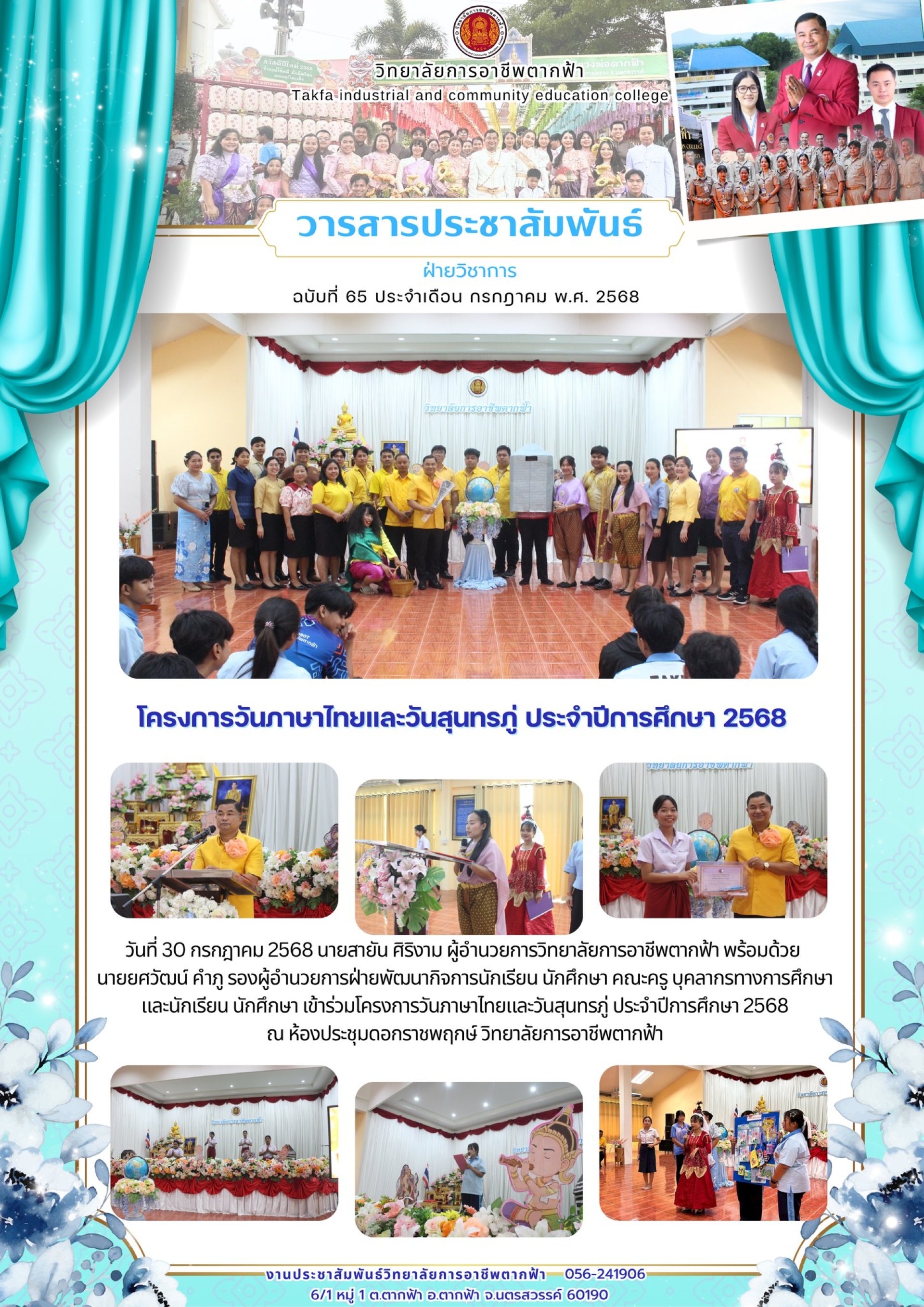 วารสารตากฟ้า ประจำเดือน กรกฎาคม 2568 ฉบับที่ 65 โครงการวันภาษาไทยและวันสุนทรภู่ ประจำปีการศึกษา 2568