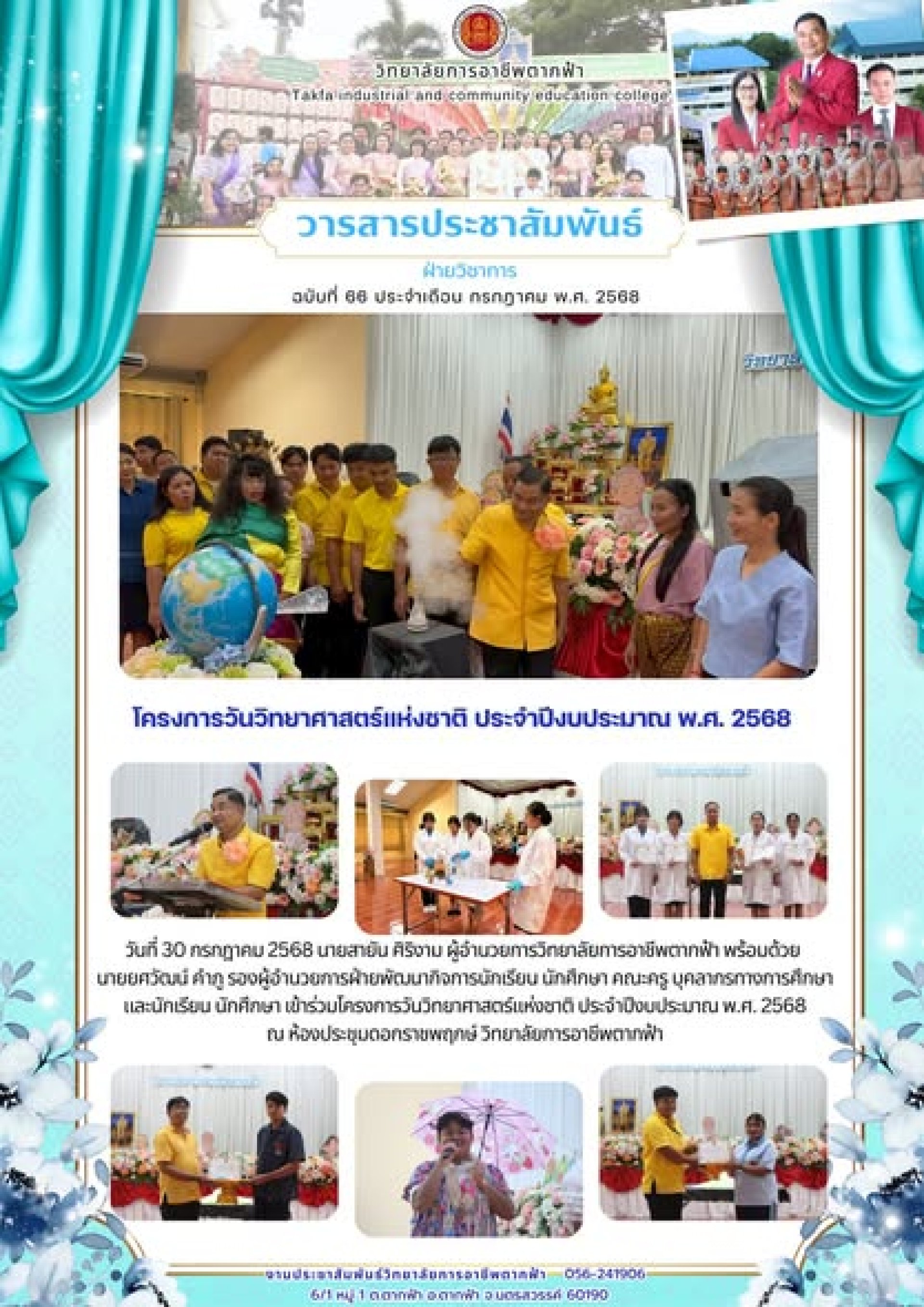 วารสารตากฟ้า ประจำเดือน กรกฎาคม 2568 ฉบับที่ 66 โครงการวันวิทยาศาสตร์แห่งชาติ ประจำปีงบประมาณ พ.ศ. 2568