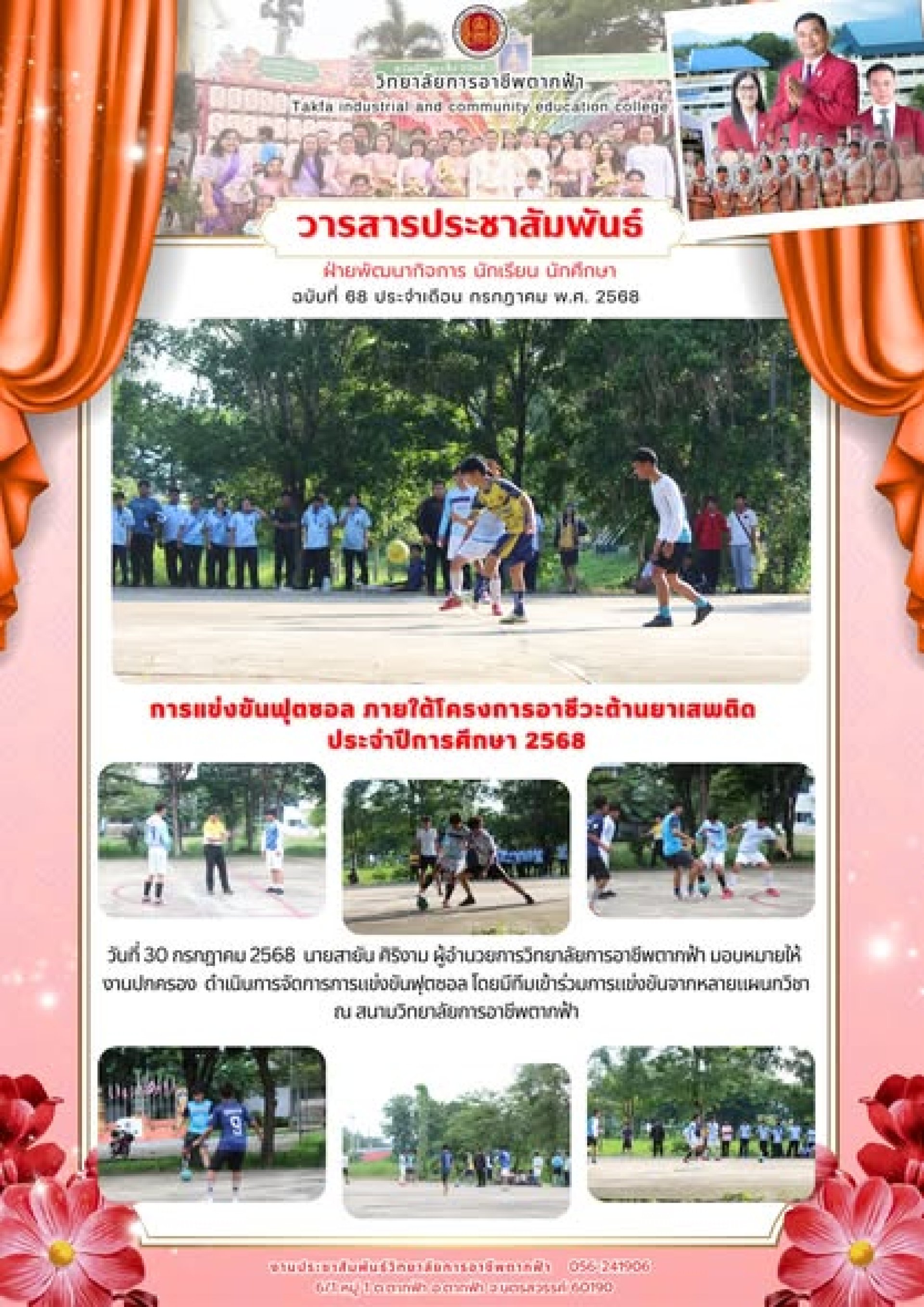 วารสารตากฟ้า ประจำเดือน กรกฎาคม 2568 ฉบับที่ 68 การแข่งขันฟุตซอล ภายใต้โครงการอาชีวะต้านยาเสพติด ประจำปีการศึกษา 2568