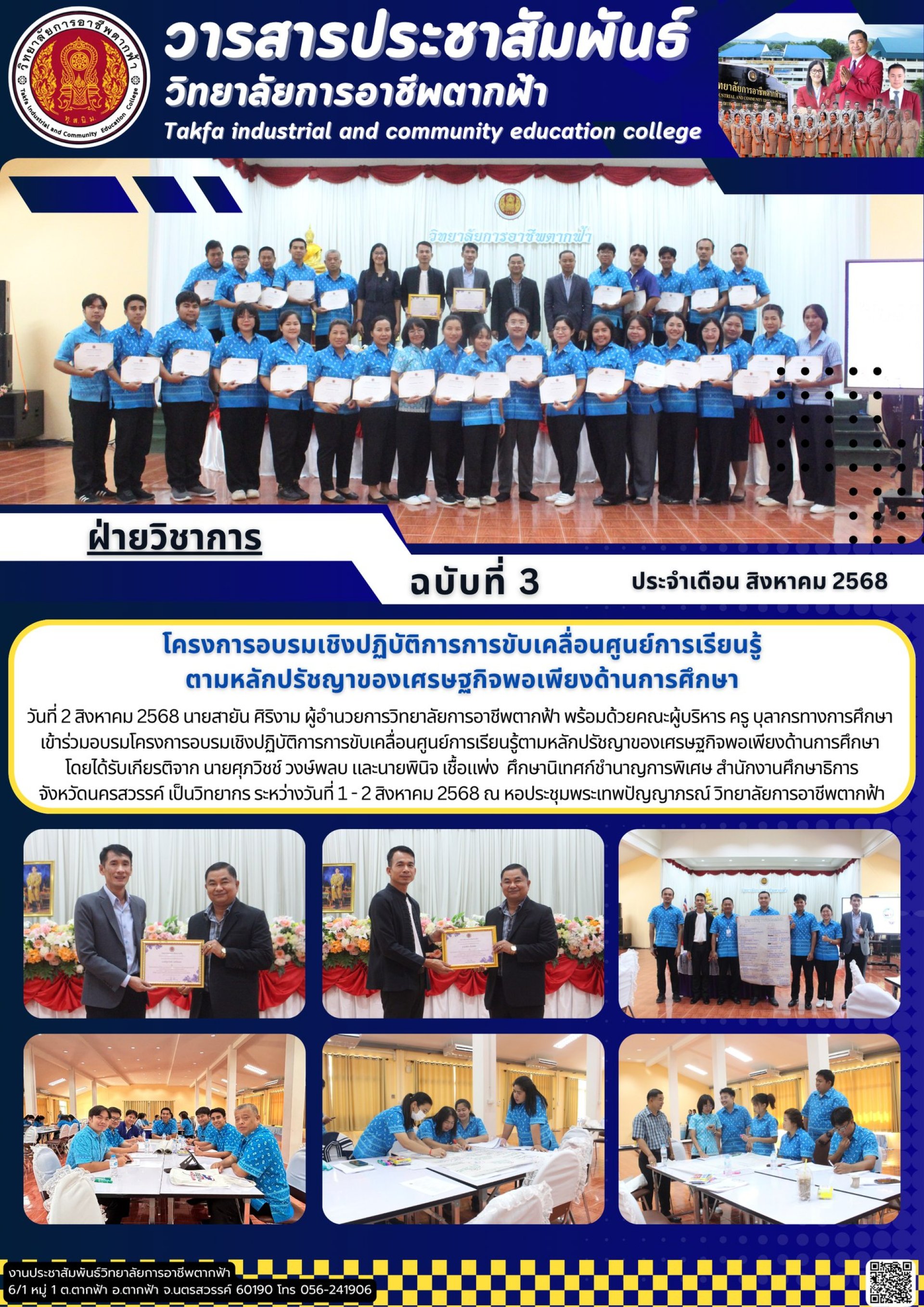 วารสารตากฟ้า ประจำเดือน สิงหาคม 2568 ฉบับที่ 3 โครงการอบรมเชิงปฏิบัติการการขับเคลื่อนศูนย์การเรียนรู้ ตามหลักปรัชญาของเศรษฐกิจพอเพียงด้านการศึกษา