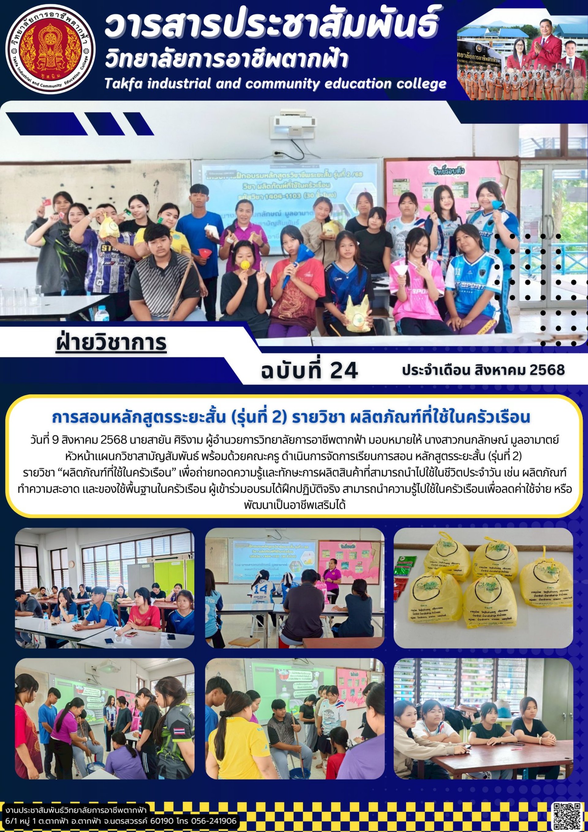 วารสารตากฟ้า ประจำเดือน สิงหาคม 2568 ฉบับที่ 24 การสอนหลักสูตรระยะสั้น (รุ่นที่ 2) รายวิชา ผลิตภัณฑ์ที่ใช้ในครัวเรือน